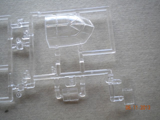 Модель;литники из светло-серого пластика,отлиты идеально,утяжин на деталях я не заметил,облоя нет.Остекление прозрачное тонкое.Расшивка тончайшая,с внутренней стороны даны прорезы,видимо для дополнительного остекления.