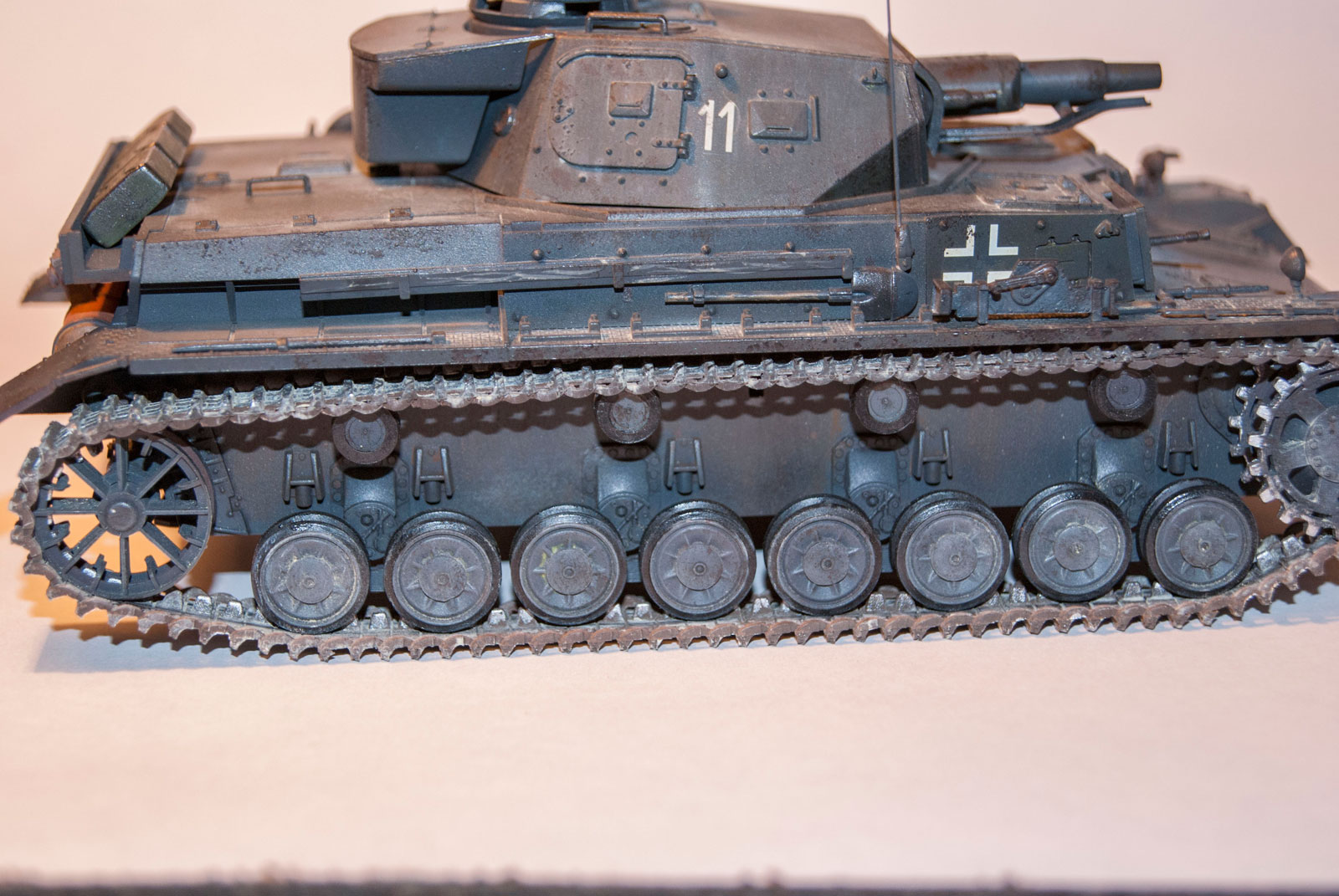 У вас и гусянки надеты: одна правильно, другая нет. Почему-то у немецких танков это очень часто повторяющаяся ошибка у моделистов.