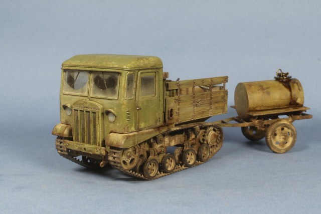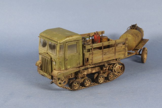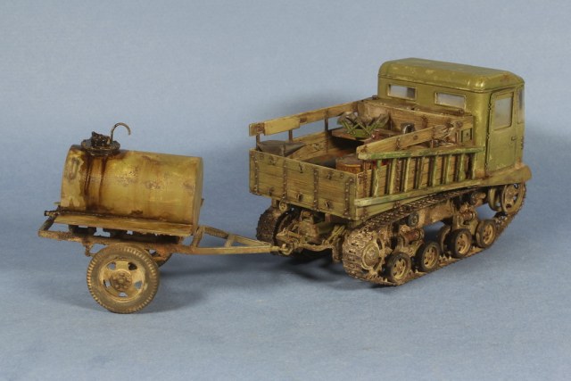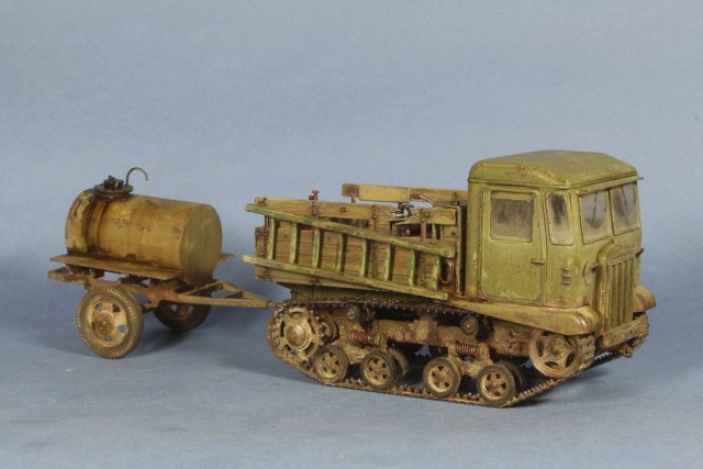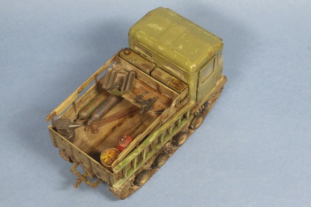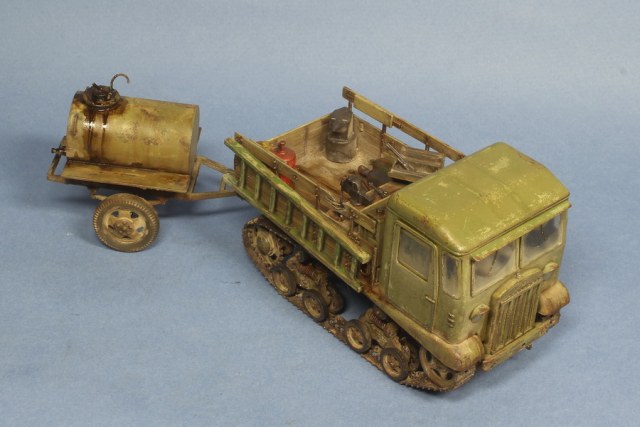 Что бы как то оживить модельку, пришлось придумать легенду, что мол тягач этот оборудовали в ремонтную летучку и прицепить вдобавок к нему бочку с мазутом) и накидать в кузов всякого барахла.