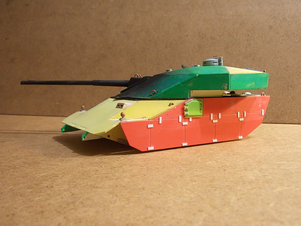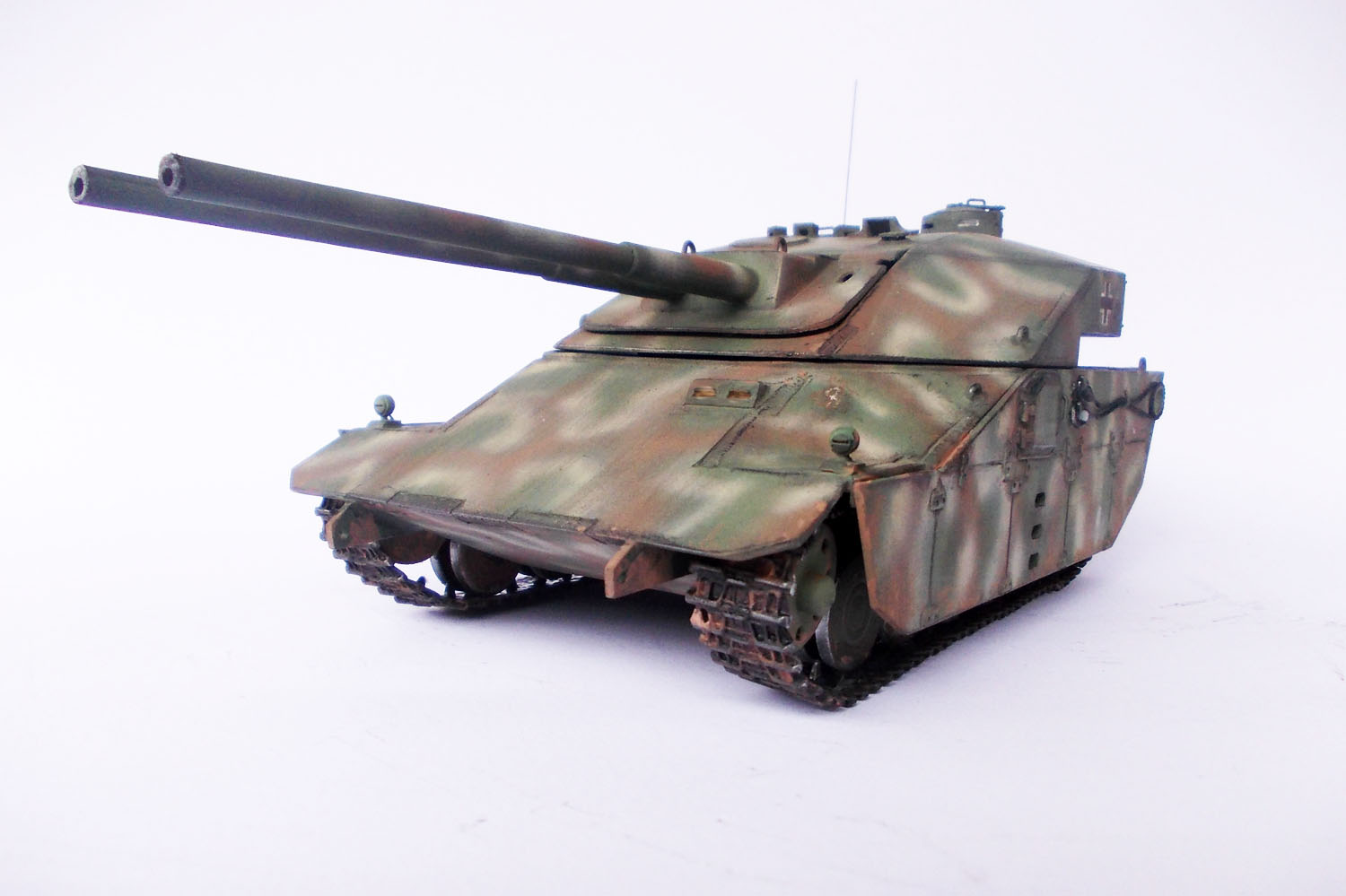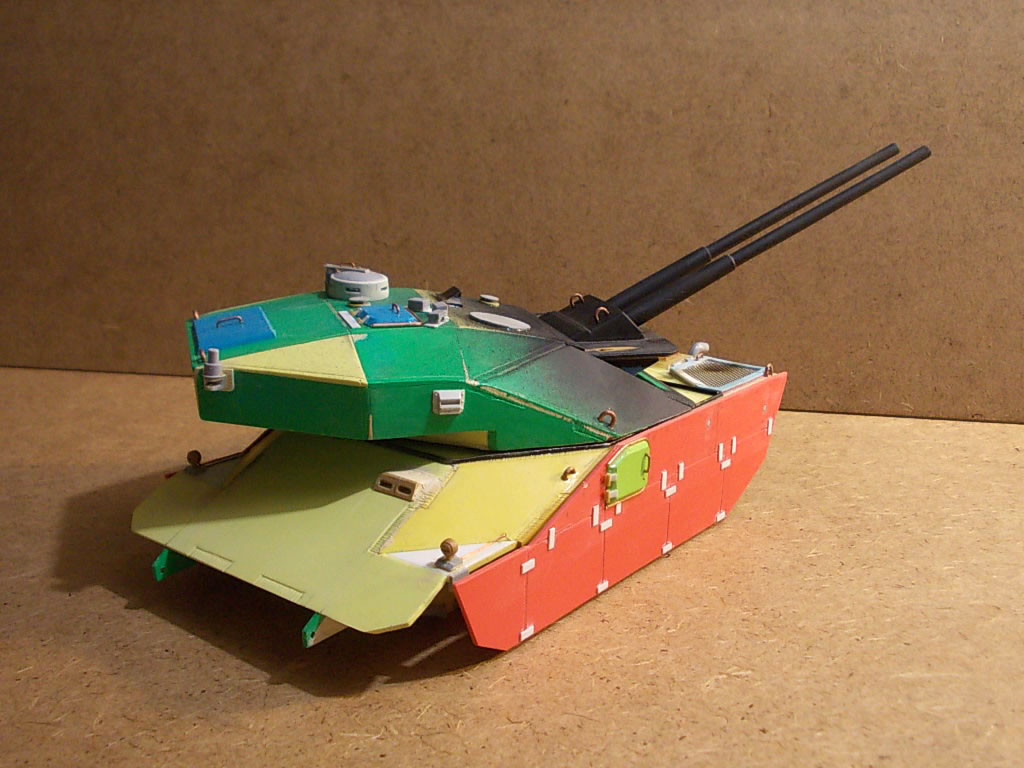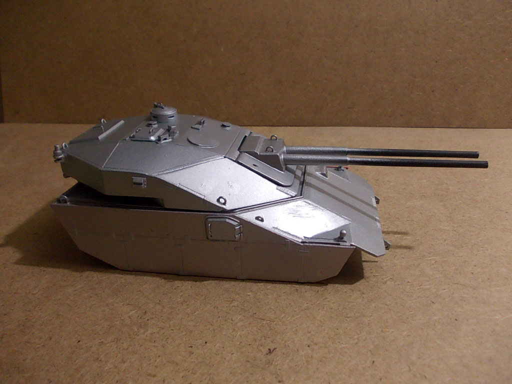 Выглядит очень интересно! Напоминает увеличенное что-то вроде E-50m старых, угловатых.вполне сошел бы за средний танк какого-то альтернативного будущего! стволы правда подкачали, если на "Pz Teufel" они удались, то тут к сожалению нет(и оверстие не по центру и не ровное, лучше бы с каких-то пластиковых трубок сделали) и гусеницы бы от пантер или тиров...