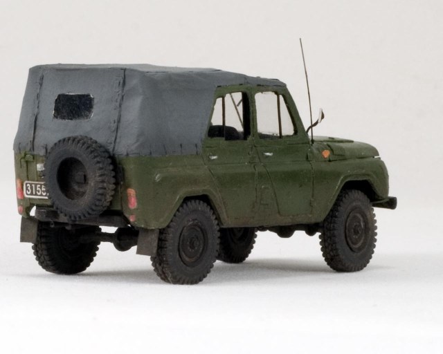 Поразил тент-Браво! Ни один УАЗ ,подающийся как военный ,не обладает точным местом установки антенны военной радиостанции.По секрету как связист сообщаю: сзади на Г-образном кронштейне в районе запаски-антенна Куликова 1.8 метра.