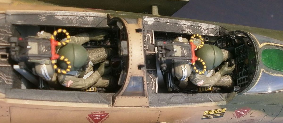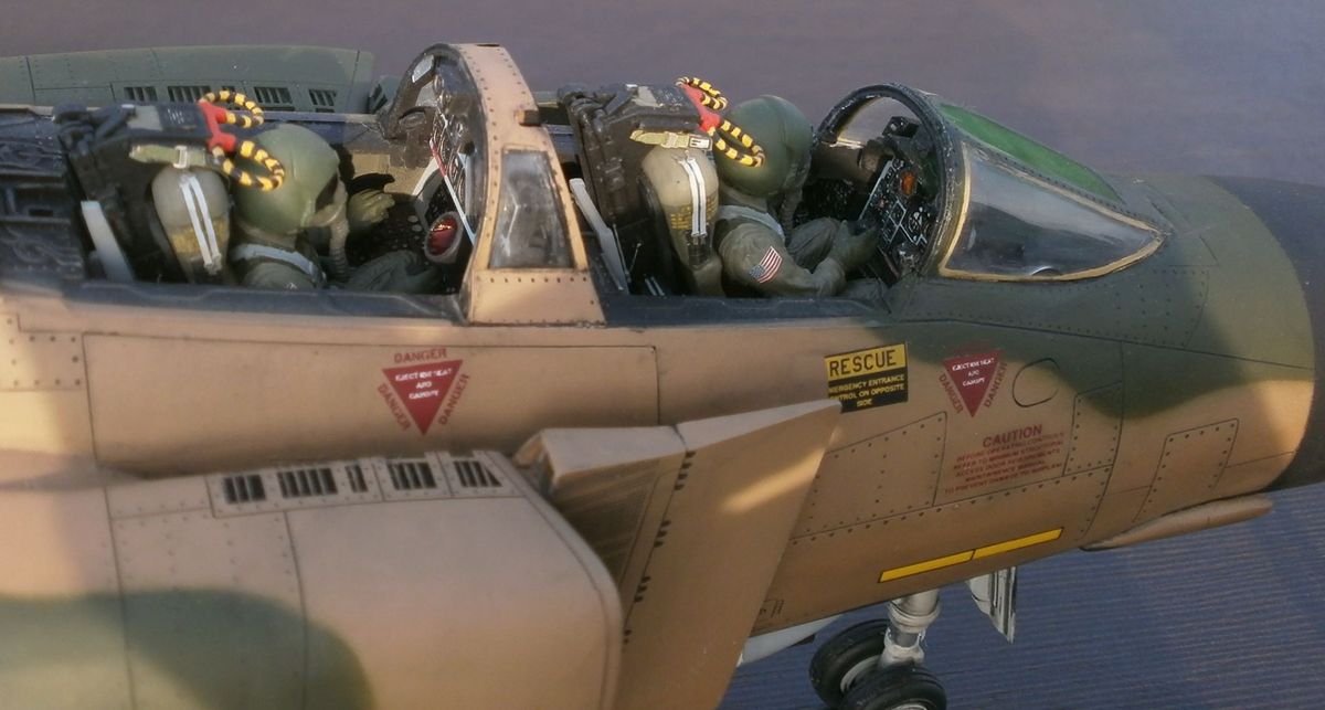 По шлемам - если имеете фото с пилотами по машине FP-AF66-279 то поделитесь, шлемы не расписывал так как не хотел заниматься самодеятельностью, красил аэром в "olive green" как и полагается для этого борта....затонировать то можно было и я думал об этом,но опять-таки, получился бы не однотонный цвет и это вновь "отсебятина". Вот фото пилота морского фантома-шлем как видно чистенький.