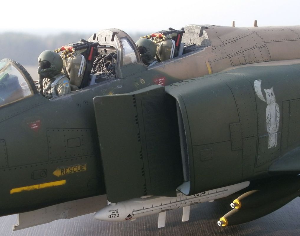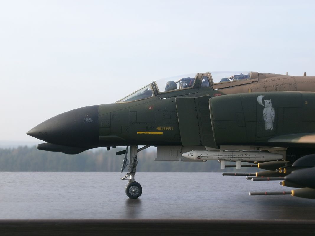 Понятно, значит все таки GBU те мои на самом деле не в тему(или с ними но без совы), если по бомбам,то надо или чисто вьетнамского периода ставить-вроде там GBU-16(?) были, с виду более топорные, по 2 на пилон можно подвешивать, но у меня их нет(я вооружением досконально не интересовался,акцент на сам ЛА делал),или бомбы обычные, сижу их к покраске готовлю,12 штук. Кстати только что примерил - с ними будет красивей, даже не думал.