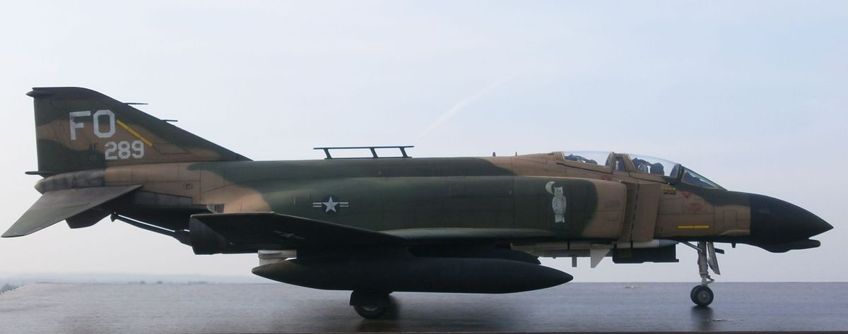 Сама сова во Вьетнаме наносилась на фантом только с черным(!)низом, если верить инструкции, код хвоста FP. На моей модели код FO, а низ на них только белый, да и границы цветов камуфляжа немного другие......все перекрашивать я бы просто сдурнел, а потому и выбрал из двух зол меньшее - низ черный, код хвоста FO. Только привязки к конкретному борту времен Вьетнамской войны не получилось(ну хоть к авиакрылу,хоть что-то), а следовательно с подвеской вооружения не заморачивался - это первая причина, и главная. Вторая - в 8-м авиакрыле фантомы состояли с 1964 по 1988 годы (08.01.65-16.09.74 а/б Убон(Тайланд), 16.09.74-01.01.82 а/б Кунсан(Юж.Корея), 01.01.82-01.01.88 а/б Тэгу(Юж.Корея), потом переданы в резерв,и в 8-ом акр, если не ошибаюсь, заменены на F-16),а период нахождения на вооружении тех УАБ что на модели подпадает под период нахождения фантомов в 8-м акр, вот вторая причина. Если бы удалось привязать модель именно к FP-AF66-279, то вешал бы естественно именно то что применялось в ходе вьетнамской кампании, тут без вопросов. Да и как иначе-ведь PAVEWAY-2 тогда еще не было, так что все нормально и с Вами я не спорю в этом плане.