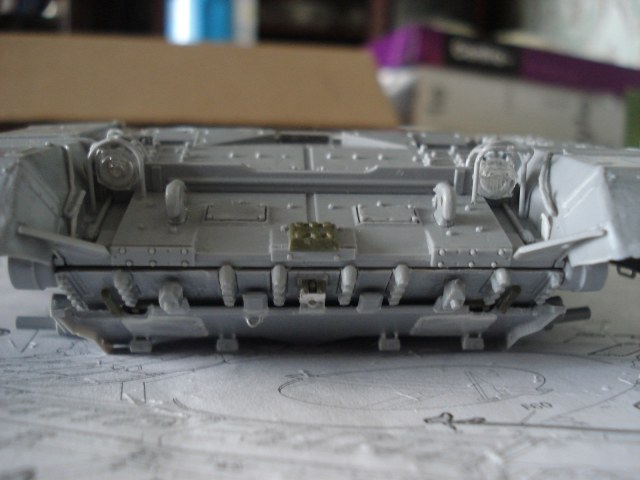 Бортовые экраны не стал "запиливать" на 1мм,так как считаю что они сделаны более реалистичны,но на фоне клиренса и натяжке траков предлагаемых нам производителем выглядит "убога",поэтому и было принято решение уменьшить только клиренс,а в целом если "запиливать" ещё и бортовые экраны,то и сам борт(низ)пришлось бы уменьшать по всей длине на 1мм.Чтобы придать более реалистичный вид,но это только моя точка зрения.