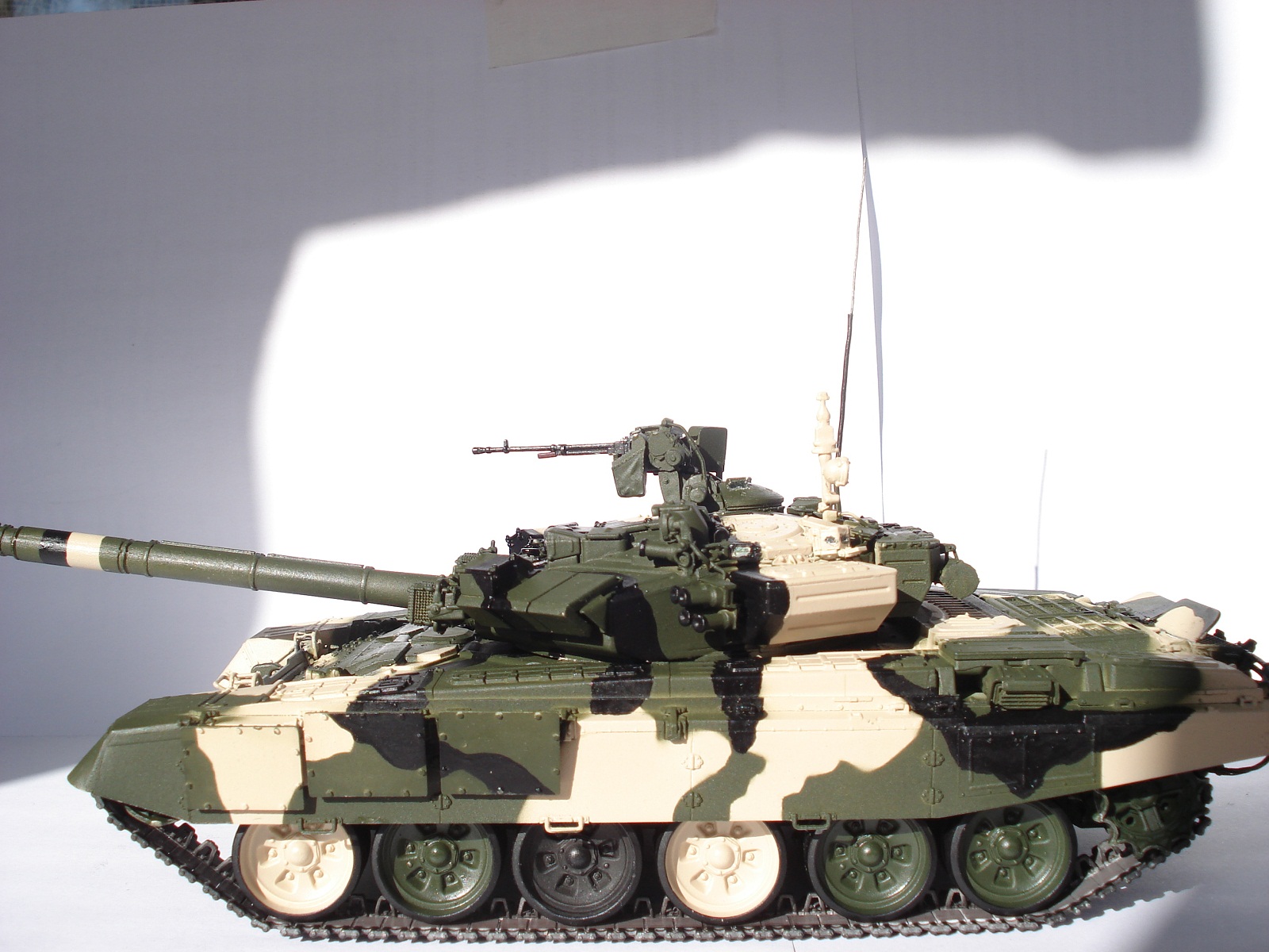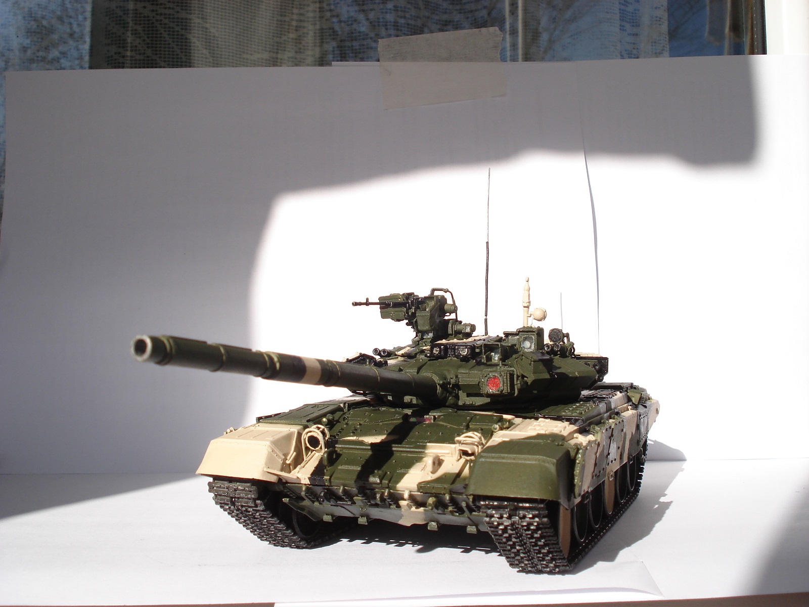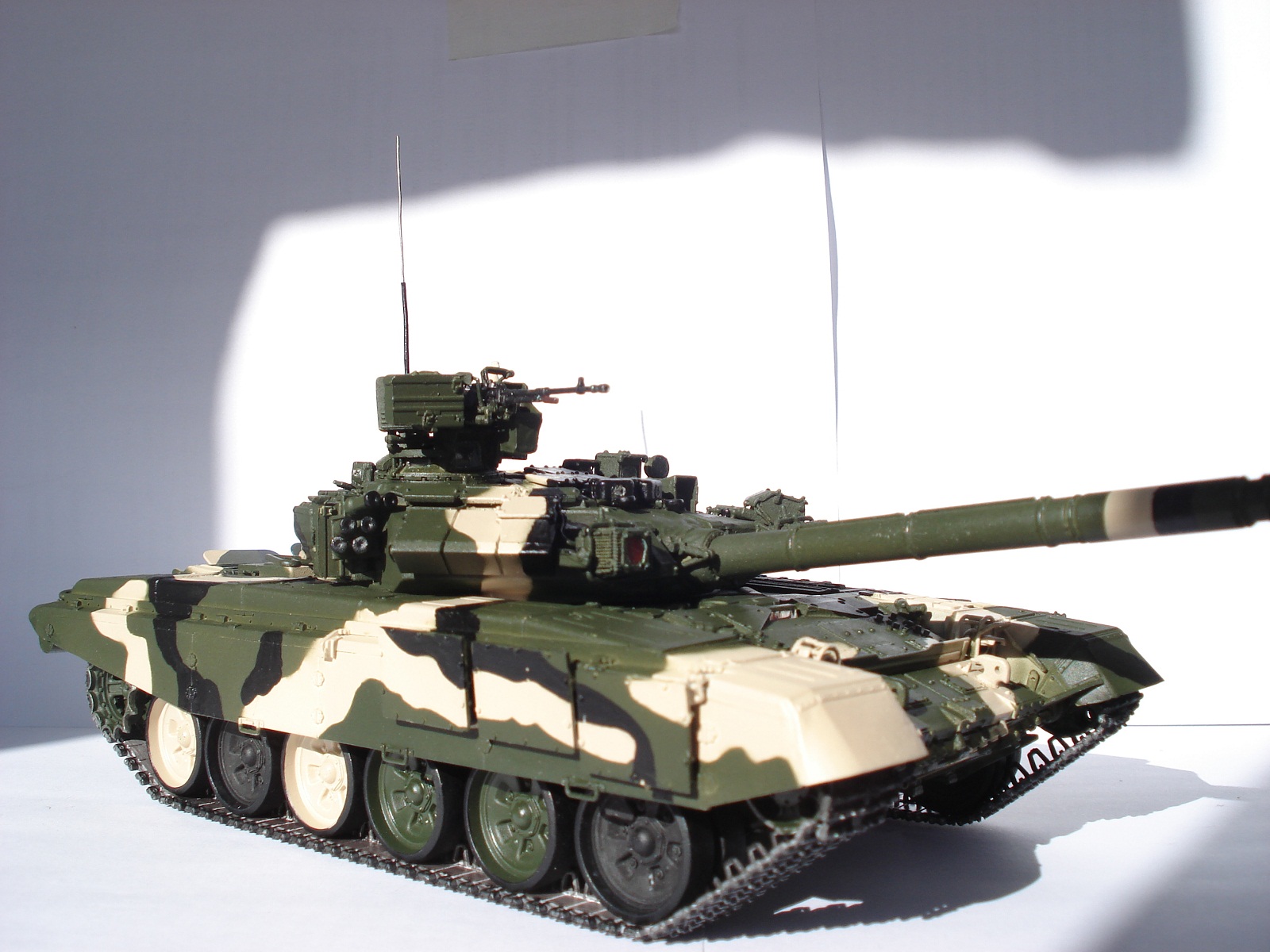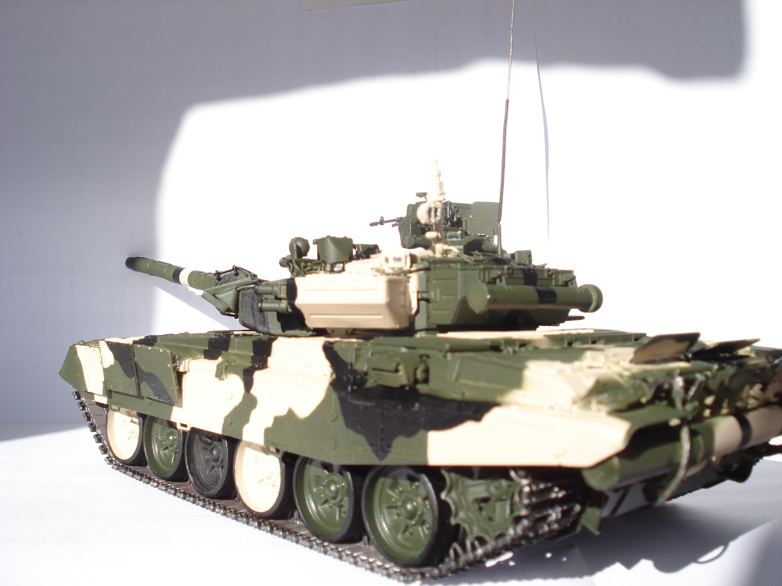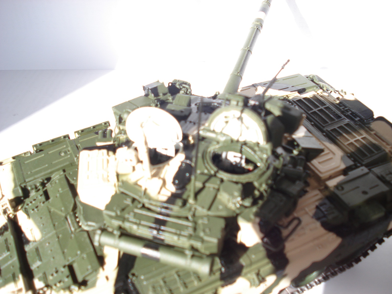 Спасибо за объективные высказывания и пожелания.С вами соглашусь во многом:фото переделаю в первую очередь в ближайшее время,антенну исправил.что касается ДВД-в оптических приборах использовал металлик,а в смотровой щели с оттенком золотистым-фиолетовым,поэтому такой эффект.Про смывку посмотрю как это делается и обязательно сделаю,если есть ссылка как делать смывку скиньте пожалуйста,за раннее спасибо.Что касается бортового номера ориентировался вот на это фото.