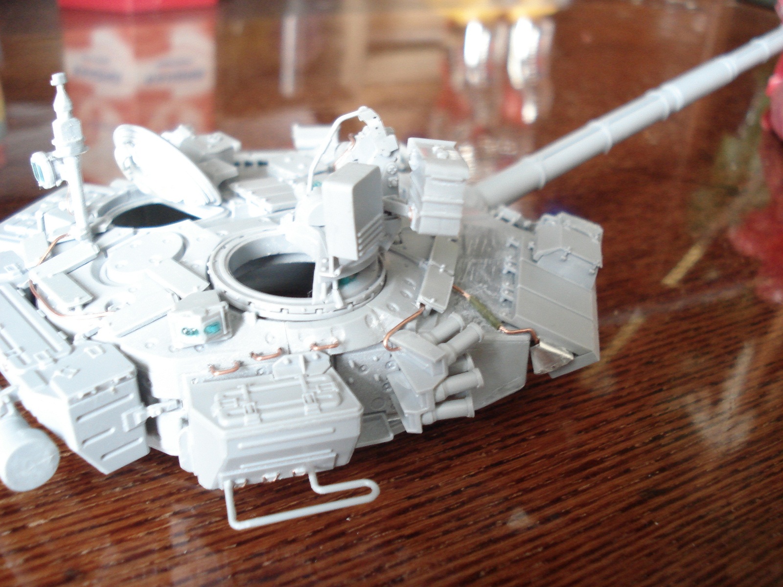 Приветствую коллега! Еще от себя добавлю..Антена кривая смотрится явно видно. Пишите оптика из ДВД не вижу что бы она играла цветами, выглядит не живо как то, смывка ну прям просится на модель сама это факт, который коллеги уже написали. Почему танк без номеров у вас? Фото конечно подкачали. Но в любом случае о меня отдельный + за доработку модели и старание. Удачи.