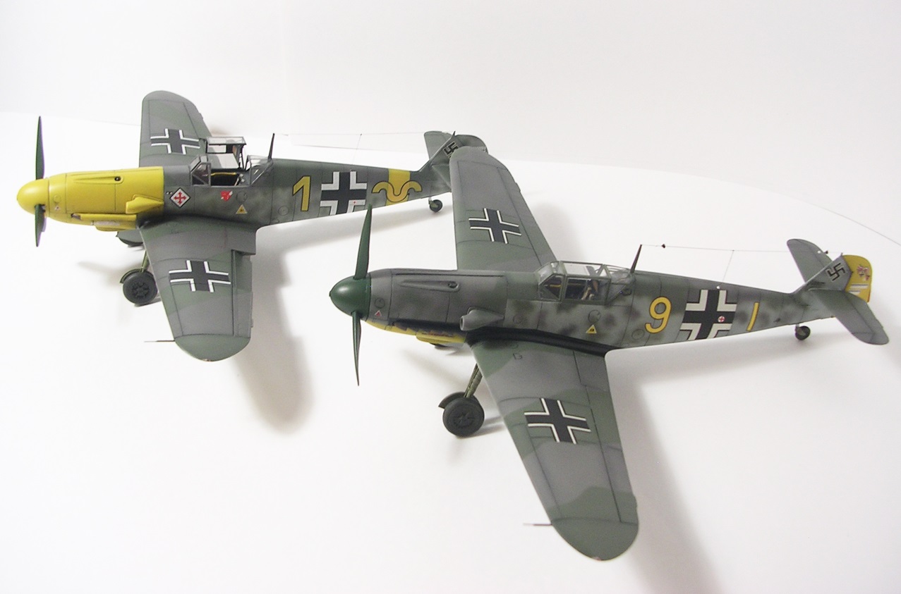 Ну и в догонку ещё один Bf.109 на этот раз в 48м размере.Конечно по нынешним временам модель от ICM смотрится бледновато по сравнению со Звездой,но куплена она была давно,когда Звезды ещё не было,а собрать решил только недавно,жалко стало,раньше мне этот набор нравился.При сборке использовал набор травления от Эдуарда,кок винта от звездовской модели(для Звезды купил набор Вектора),патрубки тоже от Звезды(их легче рассерливать),подкорректировал форму лопастей,переделал "рыбий скелет" на РН,на РВ и элеронах поленился это сделать,просто чуть сточил ,сделал "жабры" газоотвода пушки на брюхе,лючок в нижней части фюзеляжа из фольги,антенна нить Хобби+.Красил эмалями Акан,расшивку выделял маслянной краской на уайт-спирите,финишное покрытие матовый лак Microscale.Отдельное"спасибо" хотелось бы сказать фирме ICM за декали,они практически рассыпались в воде,крупные ещё ничего,за счёт красочного слоя сдержались,а вот победные марки на РН пришлось собирать по одной.