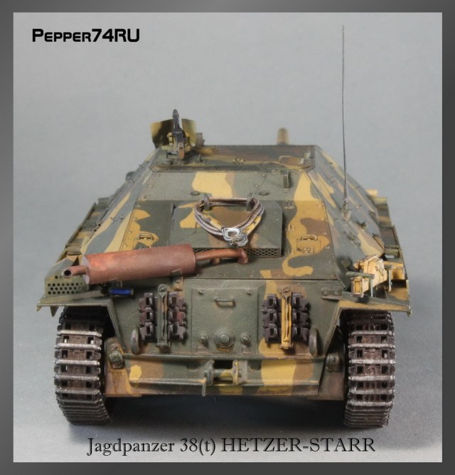 Из допов использовал: Точёный ствол пушки Magicmodels MM3507, ствол пулемёта Model Point 35100-1, антенна ABER, трос с коушами Eureka, катки от драгоновского Хетцера (они больше соответствуют прототипу), боковой ящик из травлёнки и разные мелочи.