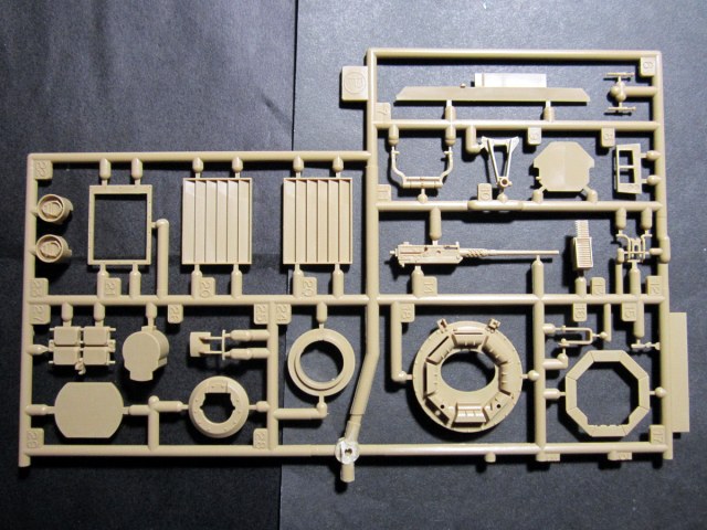 Что имеем в коробке: 10 рамок с деталями (одна с прозрачными деталями), отдельно ванна корпуса (датированная 1982-м годом), виниловые гусеничные ленты (весьма не плохого качества, датированные 2003-м годом), сетка 10х10см, кусочек прозрачного пластика 3х5см, капроновые втулки для крепления опорных катков, небольшая декаль, книжка-инструкция на 16-ти страницах, что-то типа исторической справки на 4-х страницах (наверное, об освободительной героической миссии по спасению мира американцами в Ираке). Каждая рамка упакована в отдельный полиэтиленовый плотный пакет. Все в купе - упаковано в коробку из плотного картона. Литники чистые, без облоя и утяжин. Кроме выше указанных, два литника с катками датированы 1992-и годом, все остальные имеют дату "2012". Больше сказать, в принципе, нечего. Постарался отснять, как можно подробней.