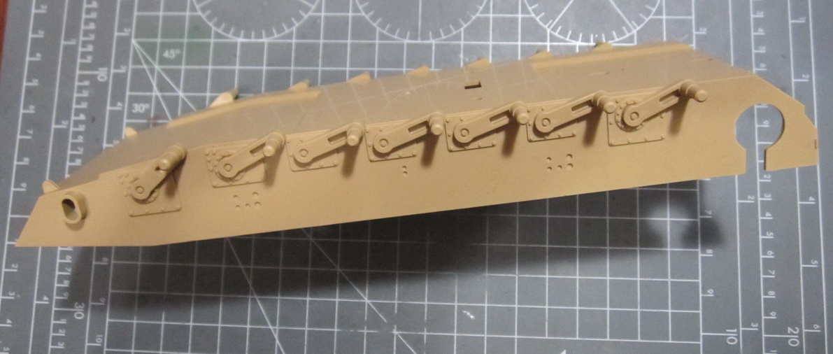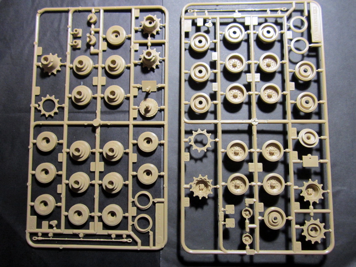 Даже в новой модели Тамия опять дает балансиры монолитом с корпусом. Очень жаль, что ходовку рабочей не сделать. Ну и виниловые гусеницы надо менять на наборные, т.к. гребни явно неправильные.