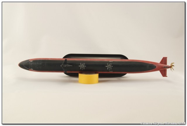 Я уверен, что с солью и пр. эффектами всё как надо: ведь лодка показана не на стапель-палубе дока, а на декоративных подставках; при таком исполнении явный "обгадинг" не уместен.