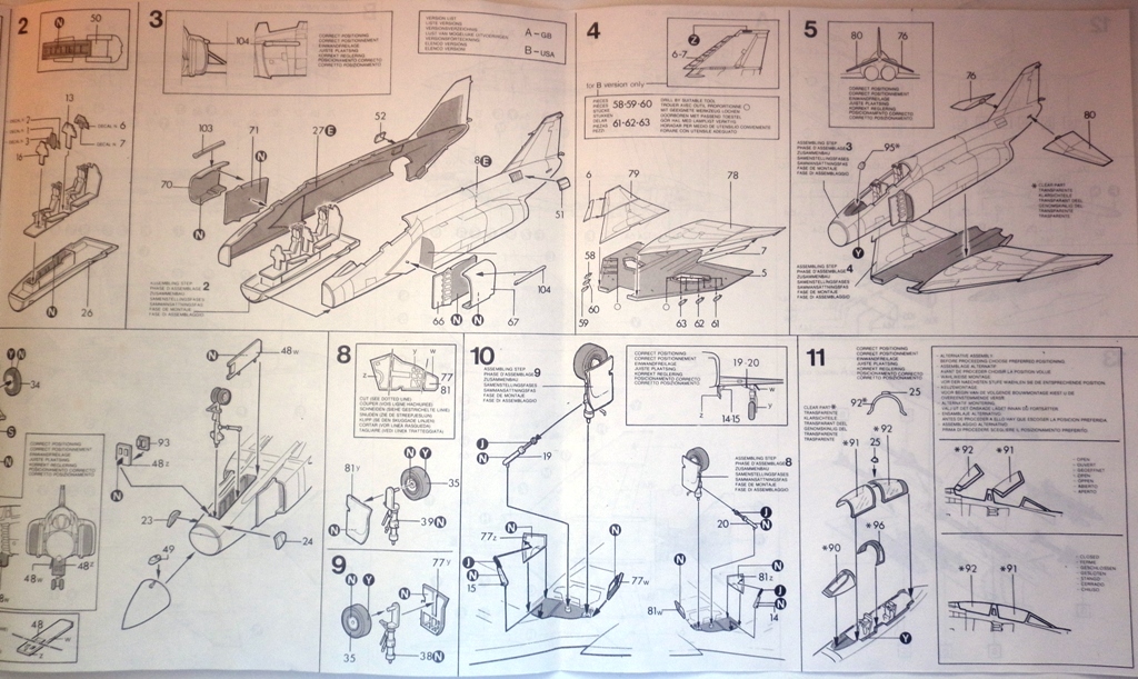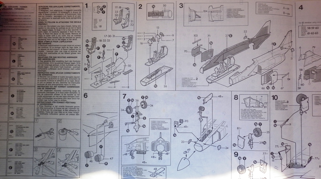 Инструкция подробно описывает процесс сборки модели и предлагает собрать британский или американский вариант "Фантома". Декаль высокого качества . Возраст совершенно не сказался на её вешнем виде.