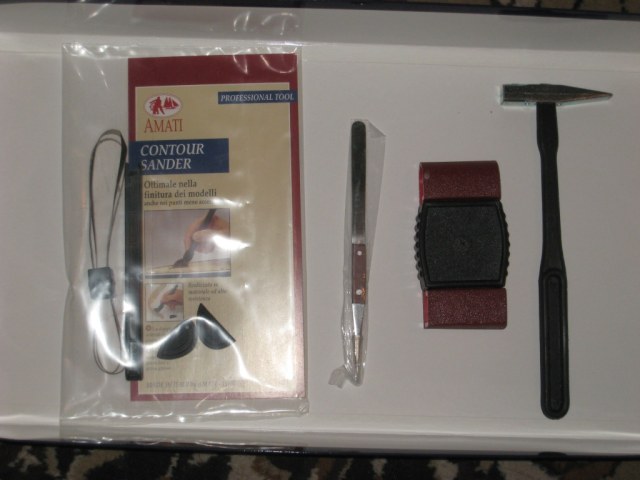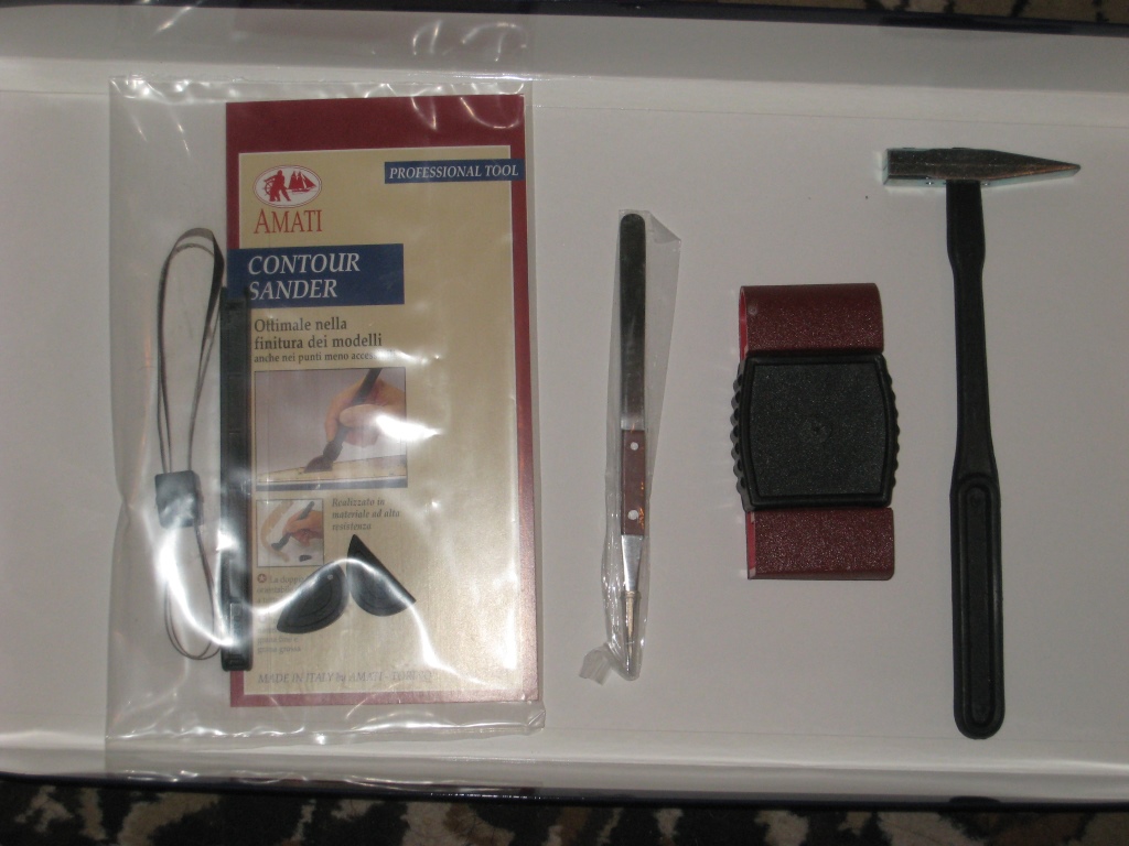 В наборе присудствуют инструменты: маленький молоток, самозажимной пинцет, большой зажим, обычный и фигурный шкурники.