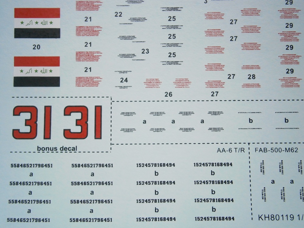 Также набор имеет довольно не плохой спектр вооружения,в нем представлено: ФАБ-500 , ФАБ-1500 , Р-60 , Р-40Т , Р-40Р , АС-11.