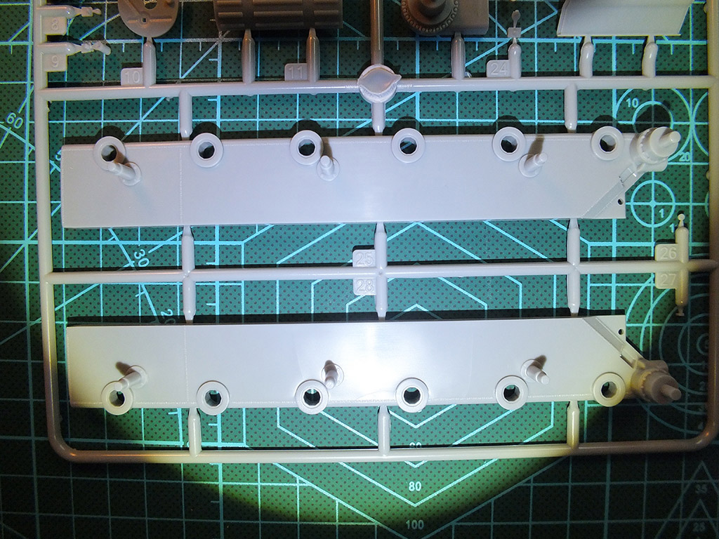 Следы от толкателей действительно удручают, особенно учитывая количество траков)! не один день на "малярные" работы уйдет)! На некоторых мелких деталях следы толкателей так же встречаются!