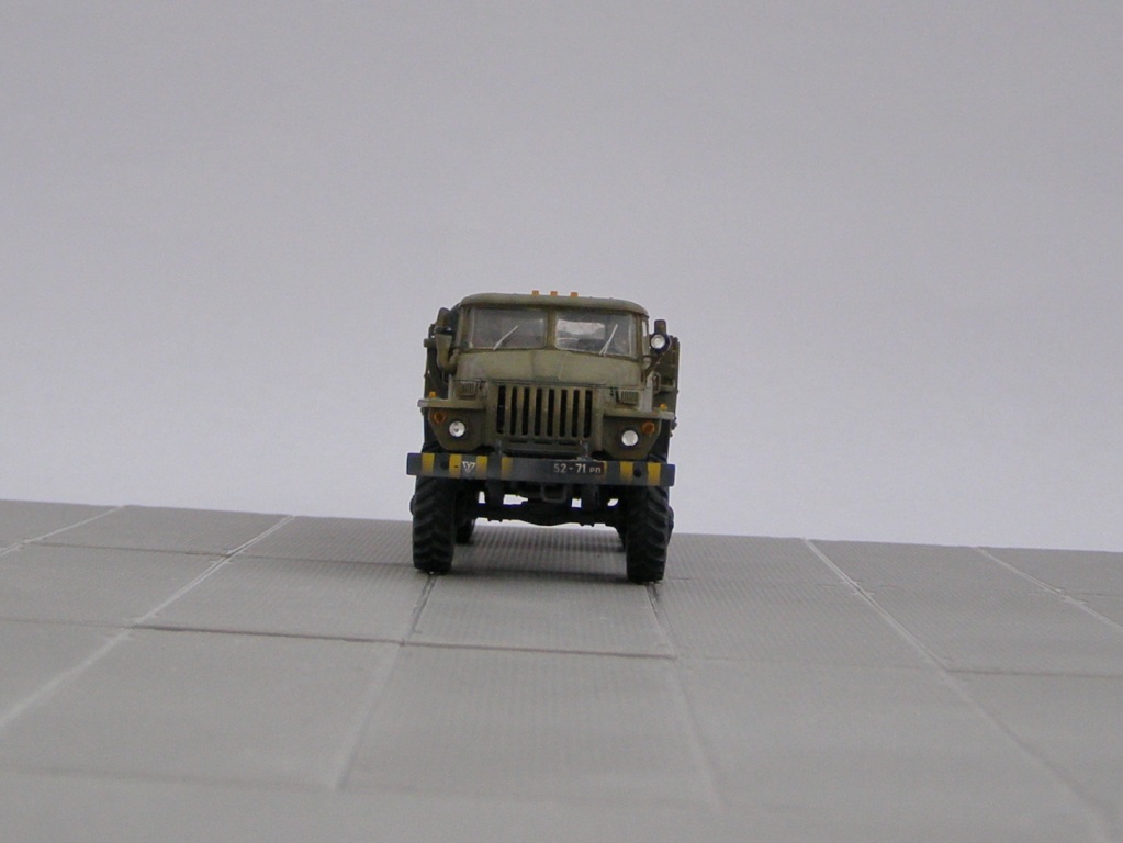 Хотел сделать АПА, но в процессе я отлучился на 5 минут, а моя кошка Соня "взяла поиграть" уже окрашенные и готовые к установке стрелы от "ARMORY"... . Трагизма ситуации передавать не буду, а просто отмечу, что переделывать и ремонтировать было уже нечего. Доделывая модель в варианте грузовика, сымитировал выгорание краски, и немного сильнее ее "запылил". Поручни и штанги зеркал из проволоки, фары из страз, «поворотники» и знаки автопоезда из прозрачного оранжевого пластика. Топливный бак остался от набора "ARMORY". Люки (видимо для инструмента) в передней части бортов натолкнули на мысль переделать грузовую платформу как на автомобилях ранних серий, что я и сделал. Вобщем раньше автомобили не делал, что получилось посмотрите. Спасибо. С уважением.