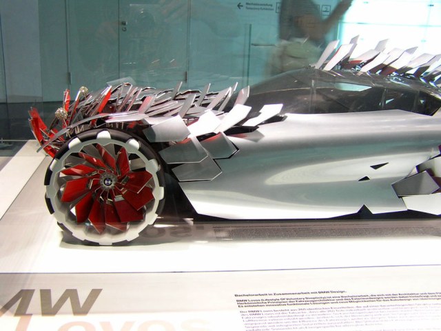 Огромная стена с мотоциклами занимает всю высоту музея и показывает развитие мотоциклов БМВ от самых первых до самых современных. В моторном зале над каждым двигателем висят наушники, и можно послушать, как этот двигатель звучит. Как и в большинстве европейских музеев, есть видеозалы, где демонстрируются кадры хроники и видеоролики знаменательных событий, достижений, разработок, есть вполне традиционная библиотека с глянцевыми альбомами и книгами о БМВ.