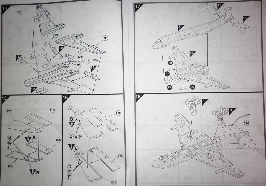 Инструкция подробно описывает что и куда клеить , в какой последовательности и в каком сочетании. Модификаций из этого набора можно сделать две, шести различных вариантов окраски четырёх различных схем .