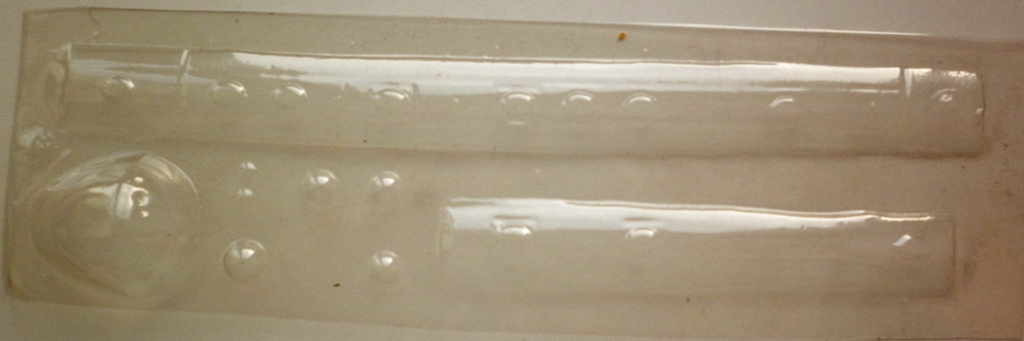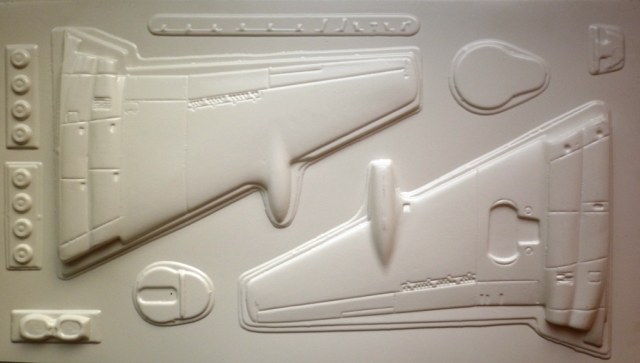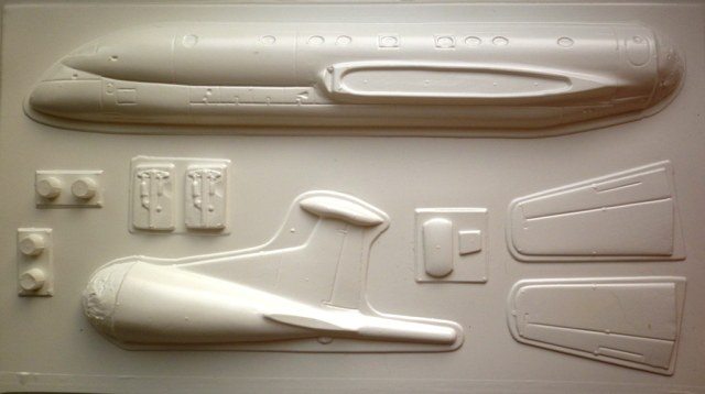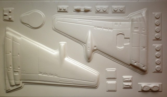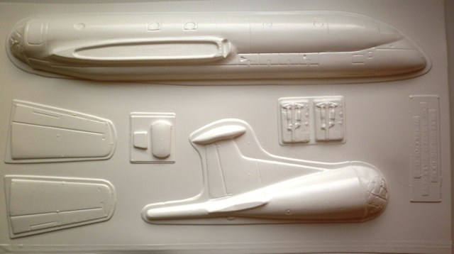 Пластик, содержаший детали самолёта довольно тонкий ( около 0.8 мм) , белый и очень мягкий. Крой внутренний . Но неполный и очень широкий. Однозначно нуждается в корректировке.