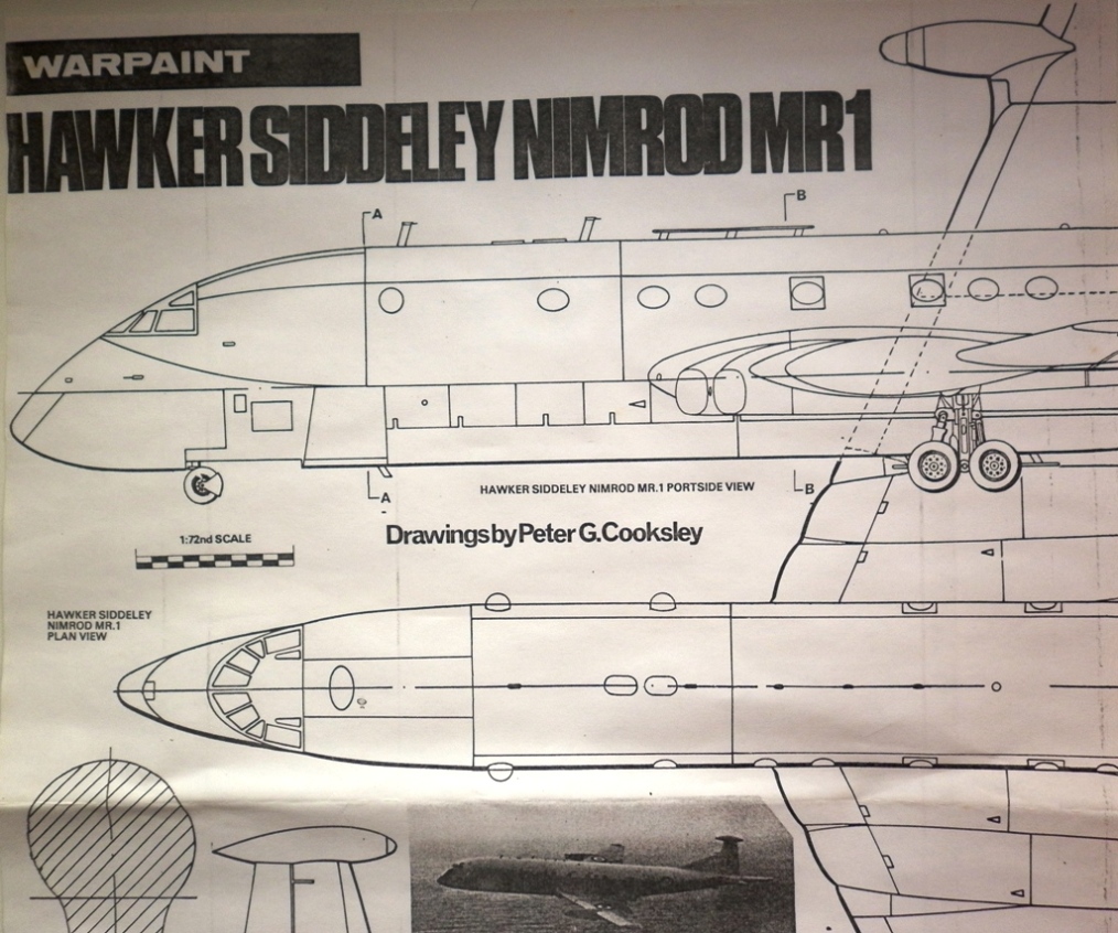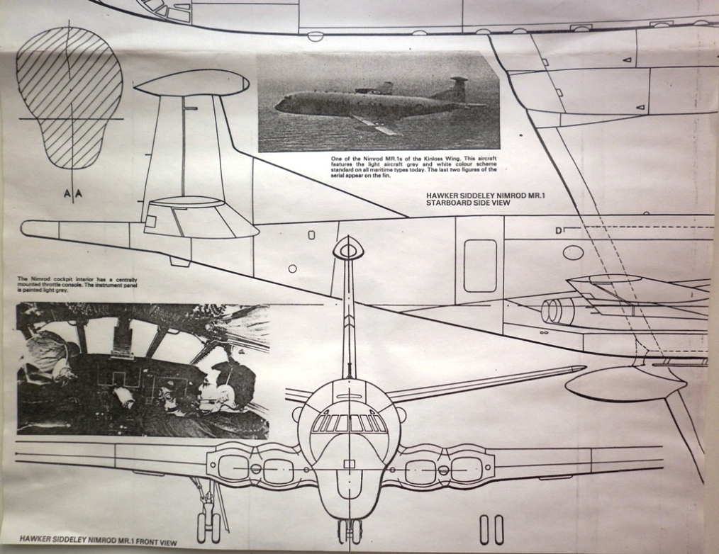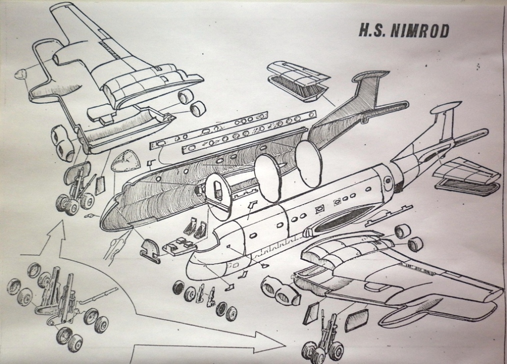 Вообще-то "Нимрод" создан на базе "Кометы ". Крыло и силовая установка - те же. Оперение только лишается фальшкиля и обтекателя на конце. Фюзеляж лишается "ванны" под цилиндрической частью. Далее - нарост фюзеляжа ( для локатора ) - и "комета" уже узнаваема.