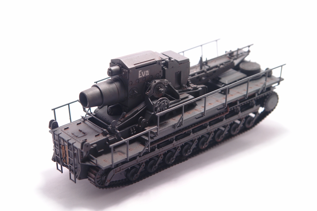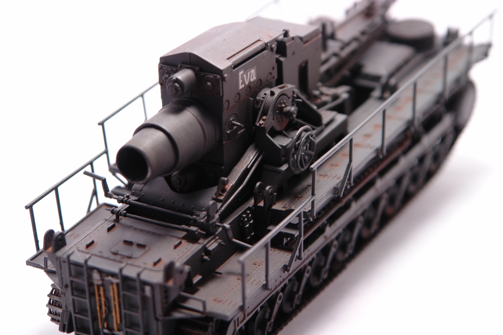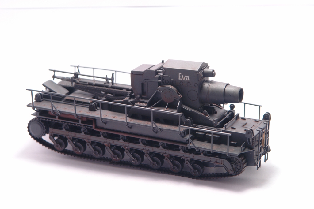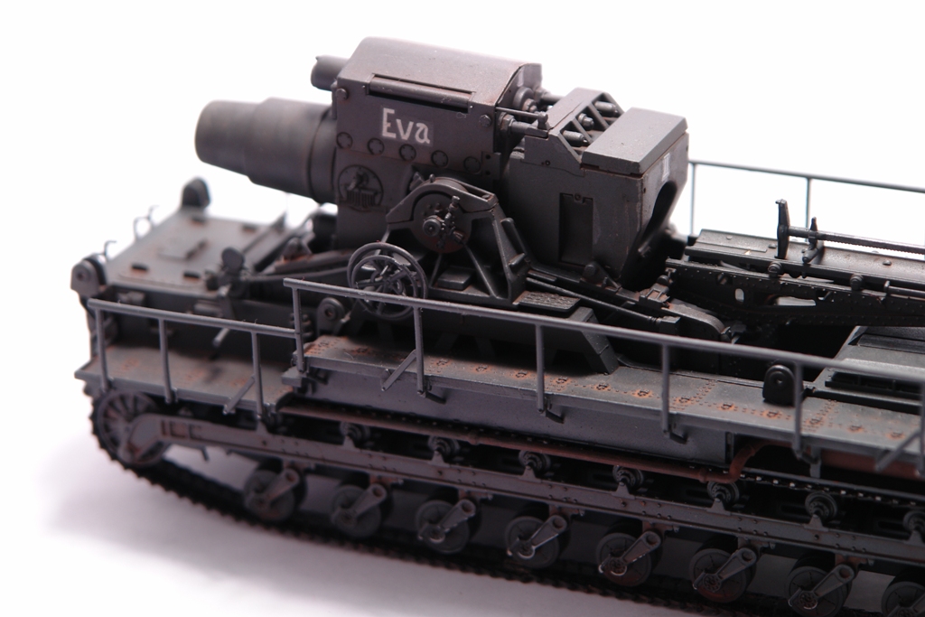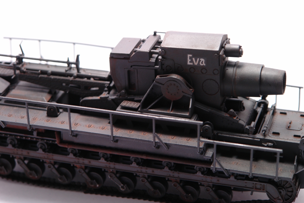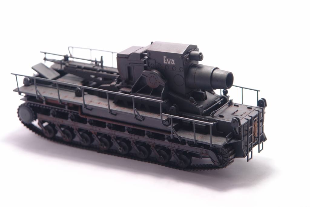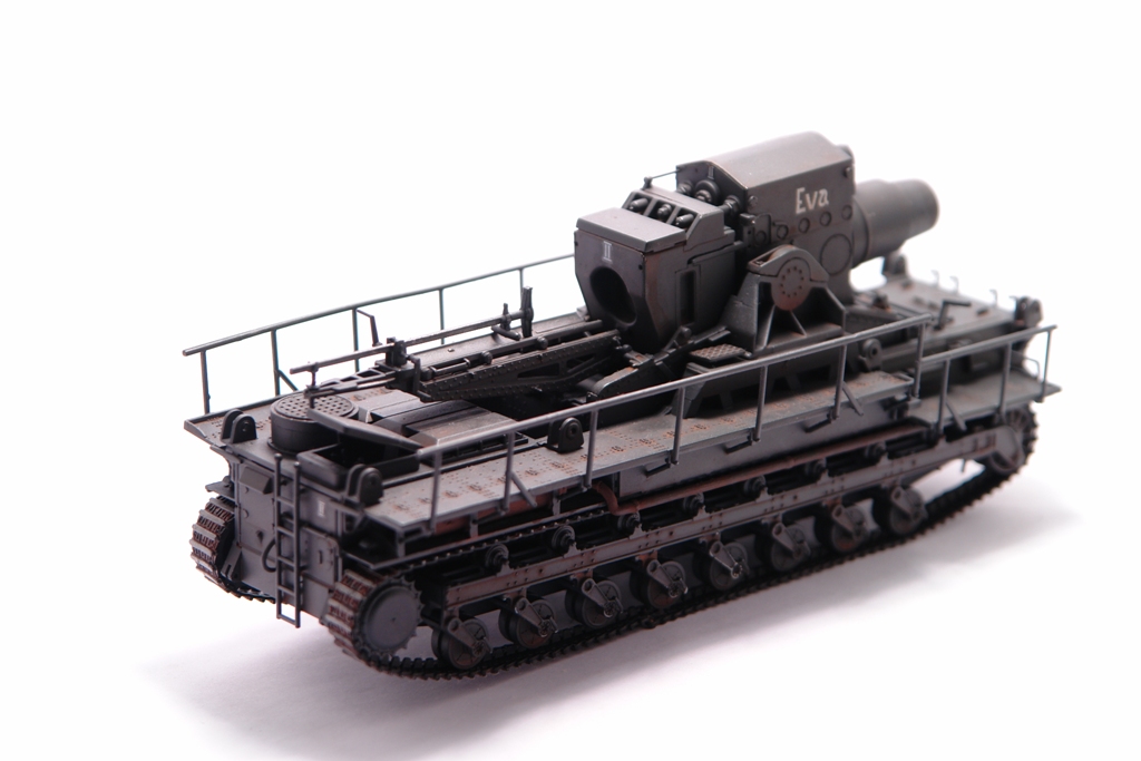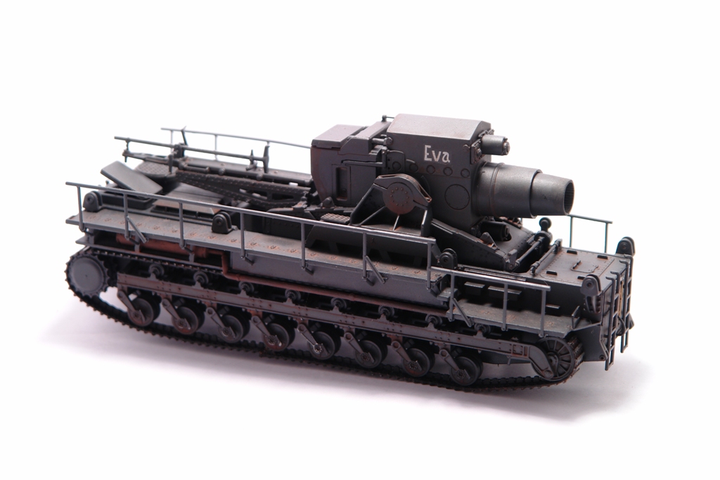Оригинал, довольно известен. Стоит такой в Кубинке. Решил сделать версию с коротким стволом Еву. Набор довольно прост в сборке, нет утяжин и облоя. Порадовала возможность сделать подвижным ствол, для "отдачи" и вертикальная навода ствола. Делал из коробки без дополнений и переделок. Просто давно хотел этот агрегат на полку поставить. Не моя тема, но люблю разных необычных монстриков, а Ева как раз из них. Пытался покрасить Звездовким танковым серым, но чуть не запорол модлель. Вернулся к знакомой Тамии. Сильно не пачкал, только фильтры и смывка. Сделал новые фотографии. На сколько стало лучше решать вам. Приятного просмотра.