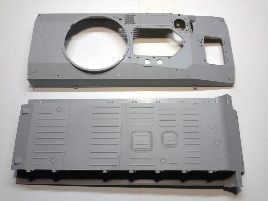 Отдельно ванная под корпус,башня и верхняя часть.Стыкуемость корпуса без зазоров, путём примерки.Сварных швов нету так же как и у СКИФа.