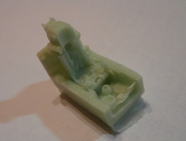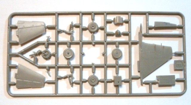 Набор выполнен по технологии ЛНД, облоя и утяжин я не обнаружил… Крой на модели внутренний, в меру аккуратный, но местами переменной ширины и глубины. Всего в составе набора десять литников. Девять из них из серого (местами с вкраплениями черного) пластика и один прозрачный… Реактивные сопла и «корыто» кабины пилота вместе с катапультным креслом производитель дает из смолы… При этом панель приборов – просто лысый кусочек пластика на одном из литников с мелочевкой… Мягко говоря – непонятно почему… Перспектива приобретать смоляную кабину от «Павла» меня не радует, по этому буду «строить» из того что есть…