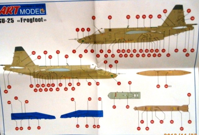 Производитель дает декаль на четыре варианта окраски: два из них ВВС России, ВВС Перу и Экваториальной Гвинеи (оба на! Они то же летают…)