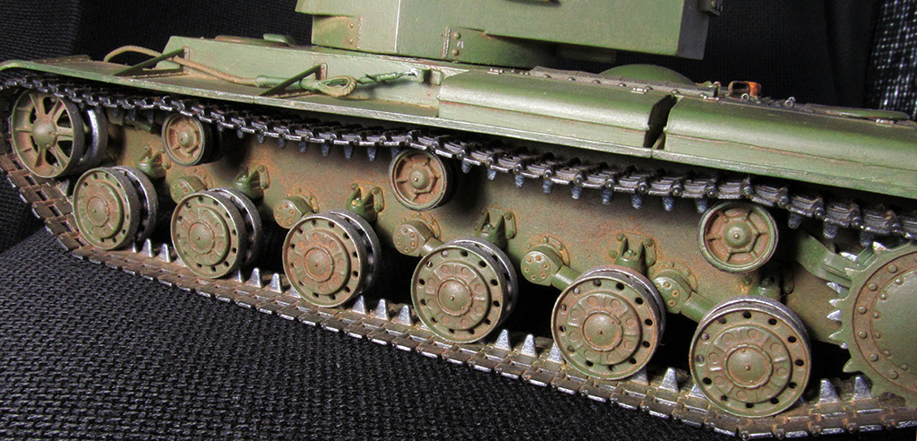 Модель собрана вполне аккуратно, за исключением тальрепов натяжения троса. Фотографий для полного разбора модели маловато.Покраска немного подкачала-смотрится монотонно. Тросы и тросик на люке МТО однозначно не могут быть в цвет машины.Фара показалась закрашеной белой краской -возможно эффект фото. Трущаяся часть заглушки пистолетного порта на лобовом листе не может быть в цвет танка. По матчасти тоже есть замечания, не смотря на комментарий-собрано "изкоробки". Над пистолетными портами на корме башни нужно высверлить отверстия. Количество гужонов на таранном угольнике должно быть 17+17, а не 11+11-поздняя версия. Болты на ведущей звёздочке должны быть напротив зубьев -но на модели это не критично.