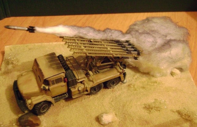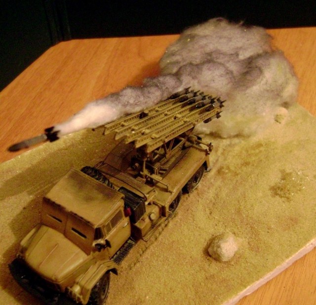 Мой второй выход на сцену - с реактивной системой залпового огня БМ-13-16 на базе автомобиля ЗИЛ-131. Сама машина представляет собой гибрид из легендарной "Катюши" и неменее легендарного ЗИЛка. Производитель предлагает сделать экспортно-египетский вариант машины, что я, собственно, и попробовал изобразить.