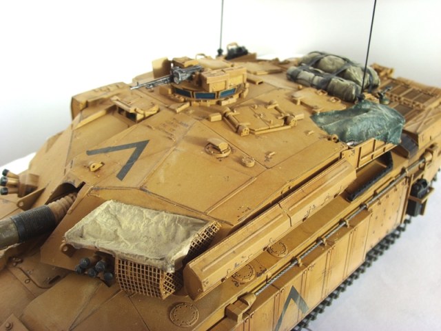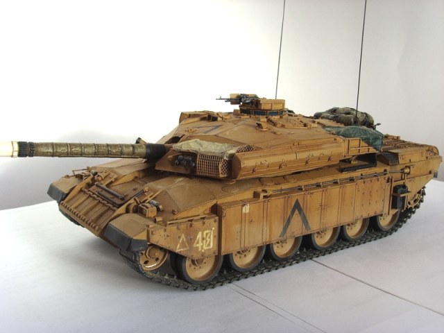 Про набор говорить не буду, думаю все о нем слыхали) Собрал достаточно быстро и без особых трудностей, шпаклевку почти не использовал. Собрав все воедино задул все одним цветом, то бишь под пустынную версию. Задувал при помощи выставленного в обзоры краскопульта от цитадели... Должен сказать, что результатом очень даже доволен, подрубил краскопульт к компрессору, которым со мной поделился знакомый товарищ, за что ему огромное спасибо, и все без проблем ровно покрасил...) Потом задул как обычно глянцевым лаком из баллона, декали, смывка, сколы... Затем матовый лак и тонировка маслом... Этот момент прошу оценить по все строгости, так как только учусь данной технике... В итоге задул все матовым лаком и решил добавить каких-нибудь вещиц на башню... Немного барахлишка от той же тамии, и колючая проволока от неизвестного производителя...