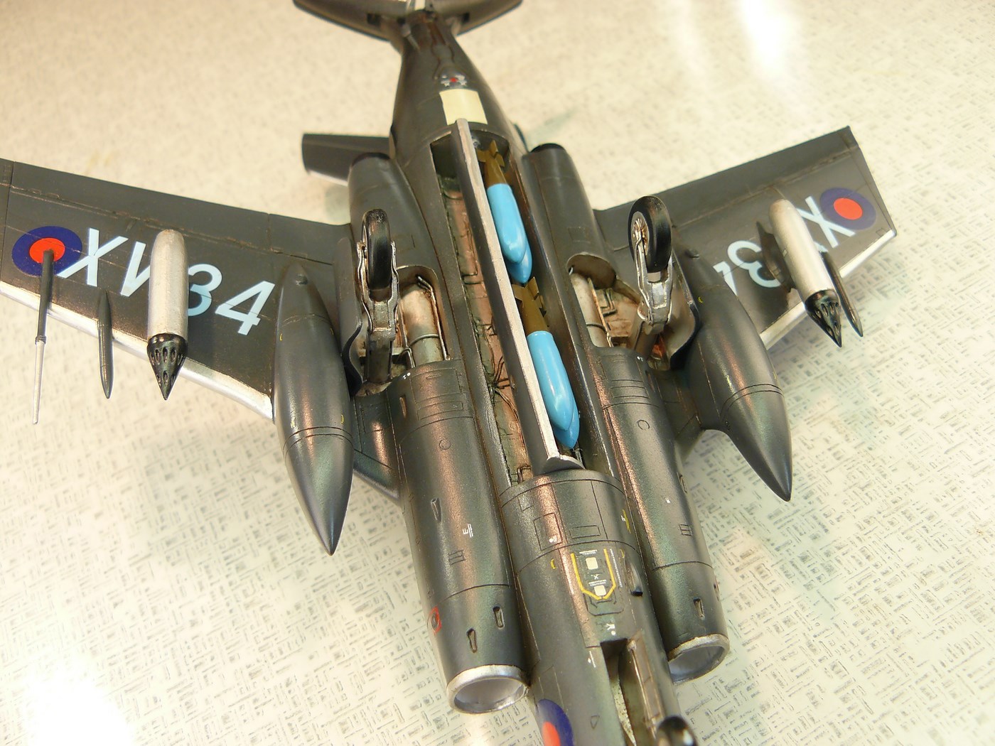 ФЮЗЕЛЯЖ. Нарезана расшивка (ориентировался на чертежи от Warpaint), сделаны воздуховоды, ниша бомболюка, с имитацией (весьма произвольной) кабелей и трубопроводов. Воздушный тормоз выполнен раскрытым.Сделана знаменитая вращающаяся створка бомболюка. Вариант подвески - на мой взгляд немного "недогруженный" для такого самолета, хотел сделать изначально с 16 1000фн бомбами, но не нашел в продаже британских бомб)))