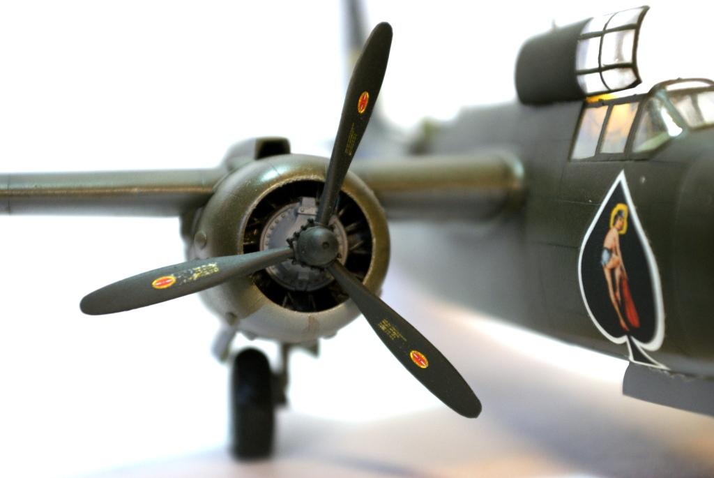 Отличное исполнение Бостона. Да, декаль очень интересная и оригинальная. Несмотря на качественное исполнение, Максим, немного поворчу. Часть машин А-20G несла на верхних поверхностях двухцветный камуфляж. Привожу фото примерно такого же Бостона. Возможно и здесь камуфляж уместен. Внутренняя часть откидного фонаря должна быть все таки покрашена в цвет интерьера, а не серая. Кончики винтов должны быть желтыми. Ну и трубки Пито на киле нет, да и АНО на крыльях. Но в целом вид у модели очень хороший, да и самолет замечательный!