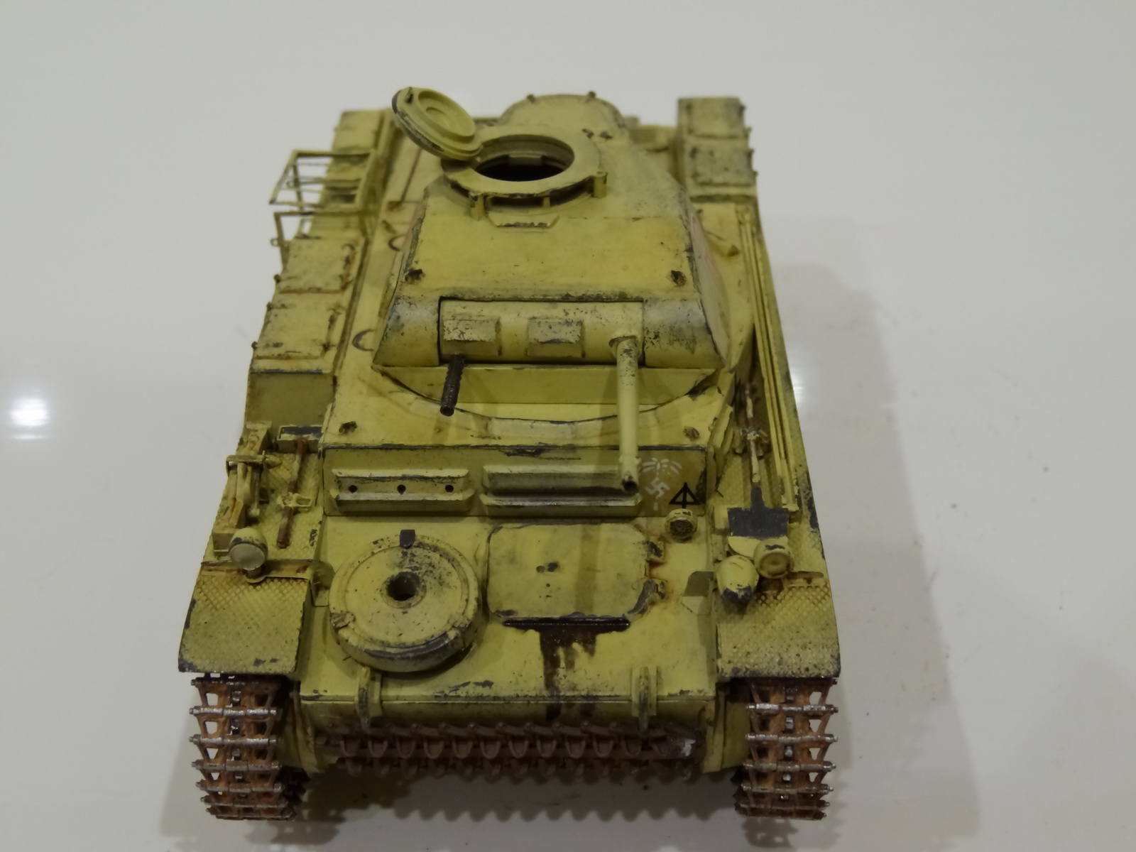 Доработки - это хорошо. Покраска - песочница. Цвет уехал в лимонный. Модель окрашена однообразно, траки -тоже. Загрязнения, столь характерного для Африки и в помине нет