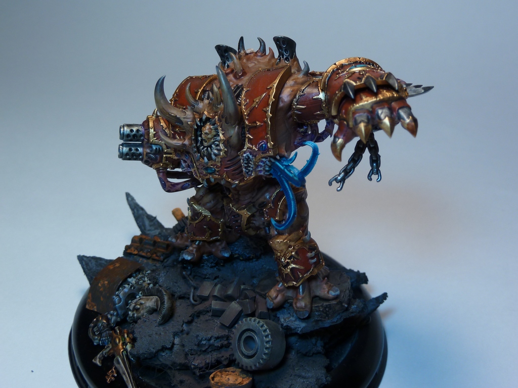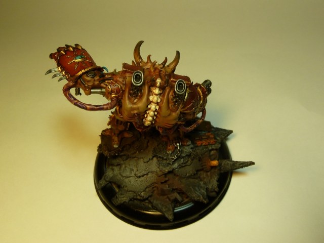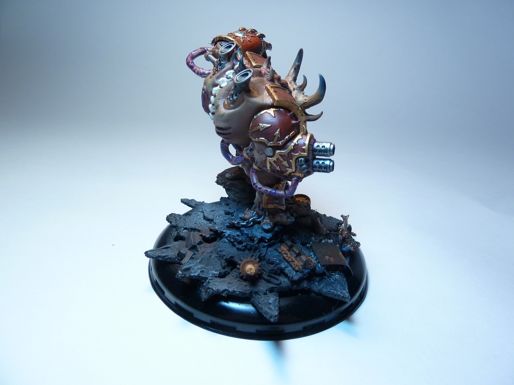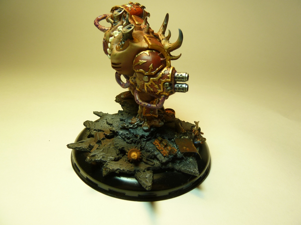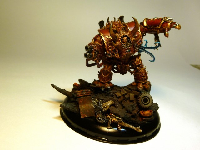 Космодесантник, бывший некогда Севирионом Крэноном сидит внутри саркофага Хелбрута. Боги Хаоса с удовольствием надругались над тем, что некогда было благородным Имперским Дредноутом. Теперь он скрывается под изуродованной бронёй, мутировавшей плотью, извивающимися кабелями и пристально глядящими глазами (всеми восемью). Многие из силовых кабелей полупокрыты плотью, а огромная мульти-мельта имеет гротескные мускулы вокруг орудийных стволов.