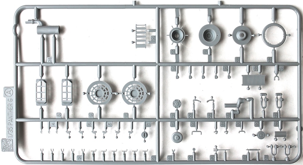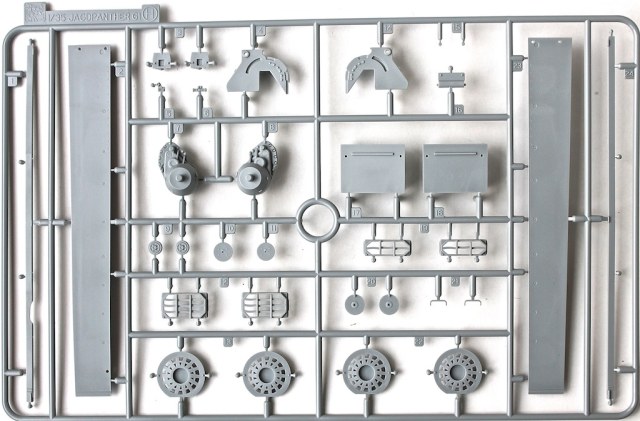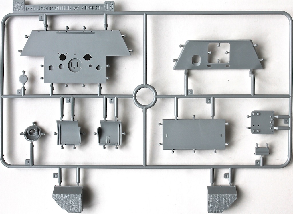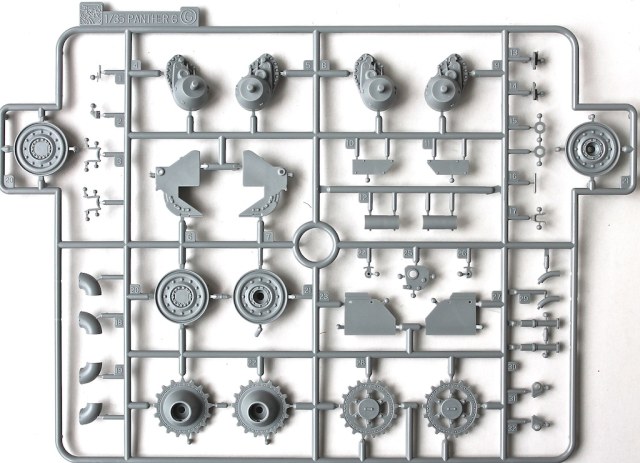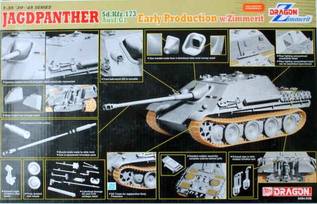 Ранняя Пантера в циммерите. Набор большой и добротный. Но покупать травление все же прийдется т.к. имеются некоторые детали, которые желательно заменить (не считая крепежа). Так же, надо менять траки. Винил на машину без навесных экранов, думаю, лучше не делать. В остальном, все в порядке. Даже два ствола имеются. Есть несколько "выборных" вариантов, так надо штудировать мат.часть.