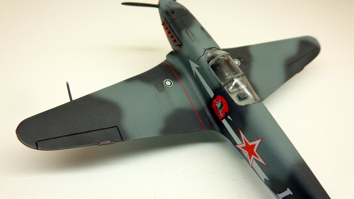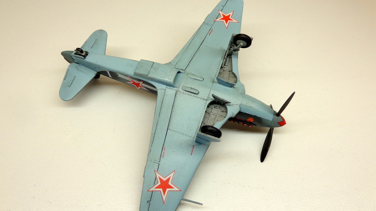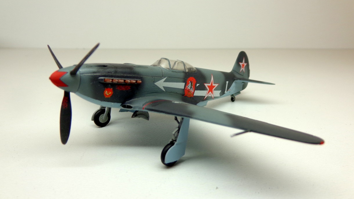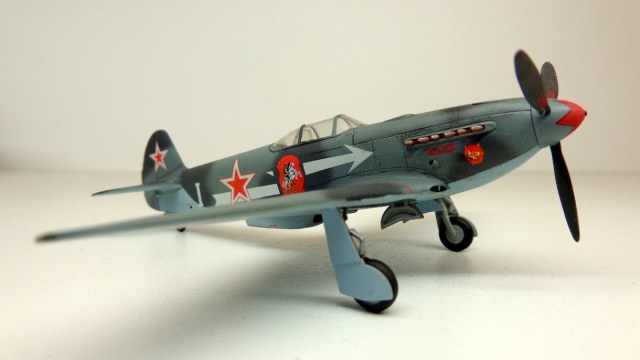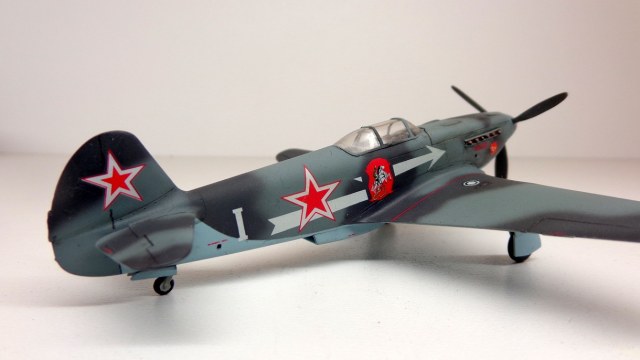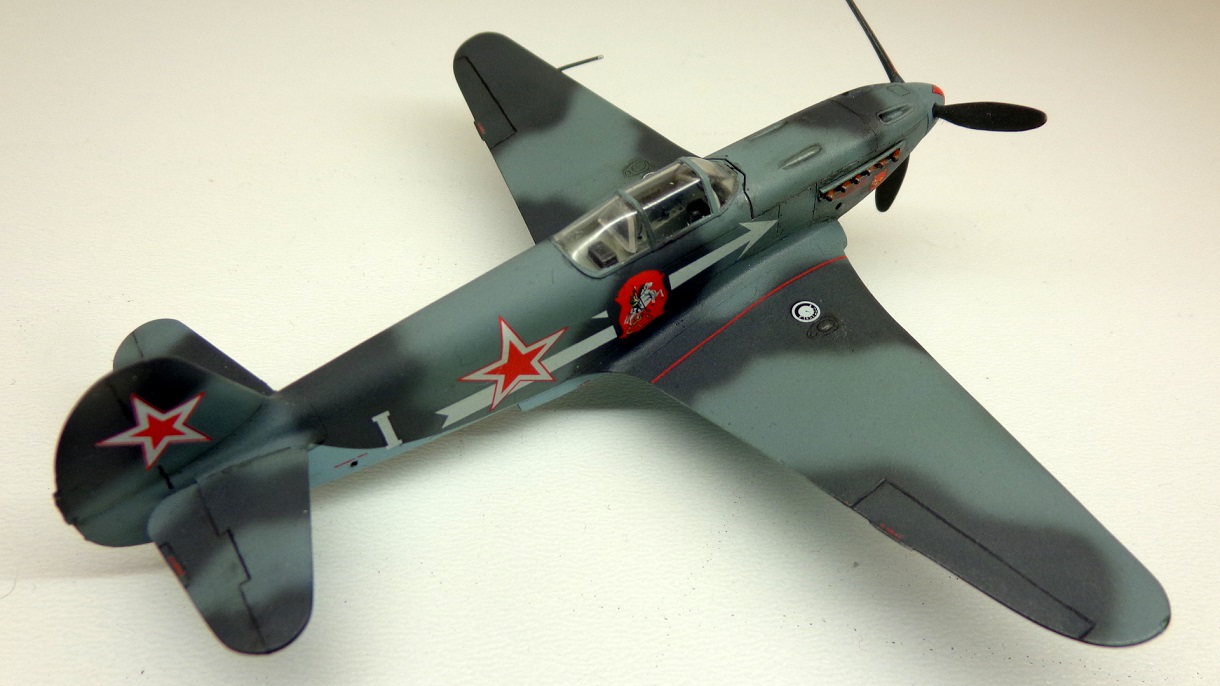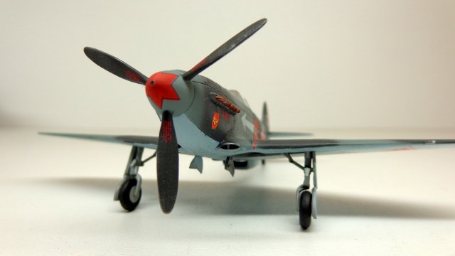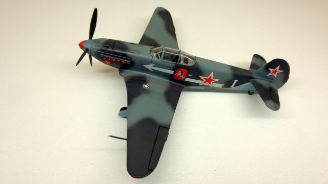 Мне модель понравилась. Камуфляж отлично сделан. Жаль, у меня такой пока сделать не получится. Аэрографа нету. Ну, как приобрету, сделаю еще одну модель. Я вообще хочу собрать копию Як-3 Лидии Литовченко из сериала "Истребители". Там камо зеленая. А на борту надпись.
