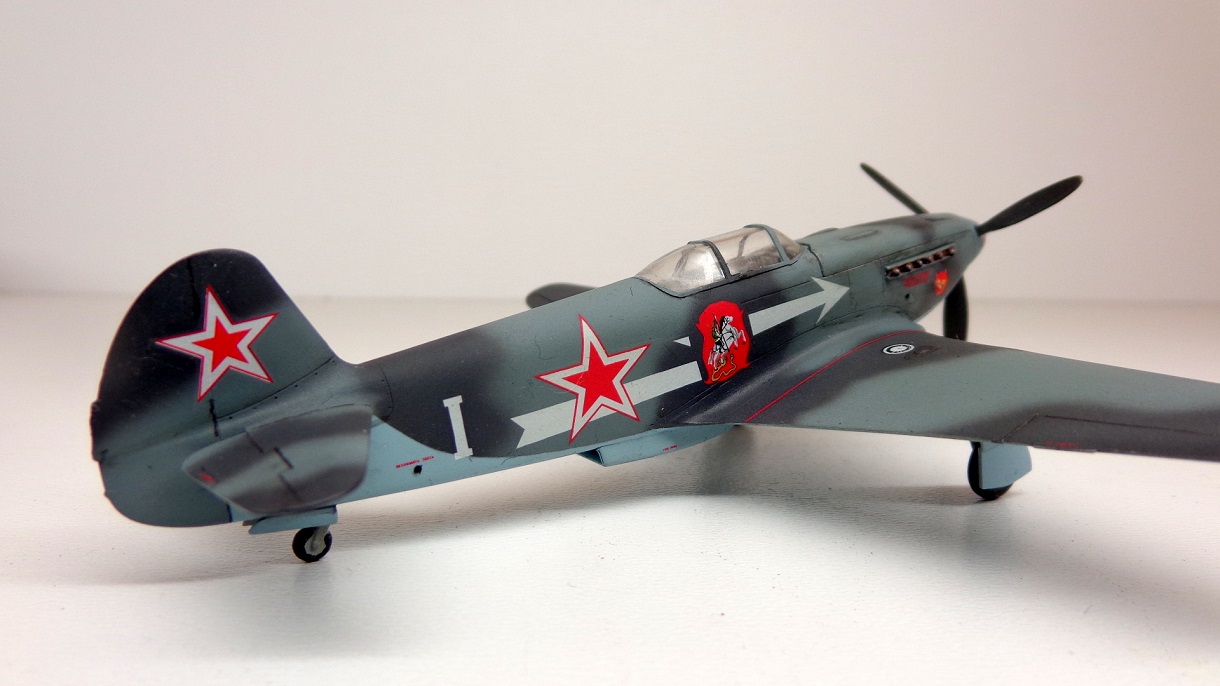 Этой моделью я, наверно, никого не удивлю, звездинских Яков на Каропке было уже много. Но для каждого автора его модель имеет наверно какое-то особое значение. Итак, небольшая предистория. Подробности жизни Георгия Нефедовича Захарова я узнал из его собственных мемуаров, которые прочитал кажется в 1985 году. Летчик-истребитель, прошедший три войны, получив звание генерал-майора в 1940-м, так и пронес это звание до конца жизни, наконец, командир знаменитой 303 ИАД. Конечно же не оставил меня равнодушным и его киношный образ "генерала" из известного французского фильма "Нормандия-Неман". Поэтому мне давно очень хотелось видеть в своей коллекции модель захаровского Яка со "святым Георгием" на борту. Первоначально, еще где-то в 90-х я купил в магазине модельку Як-3 генерала Захарова от "AIRFIX" (она же "Heller"), была такая серия, вроде "Асы II мировой". Но "эллеровская" модель мне не нравилась, поэтому почти в это же время я приобрел Як-3 от "EMHAR", которую считал наиболее похожей, хотя и простоватой. Но этот свой "проект" так и не довел до конца, модели лежат до сих пор.