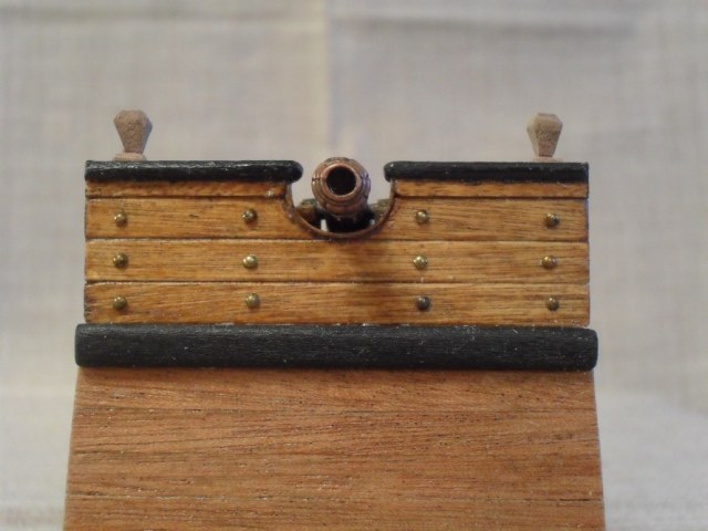 Попытался учесть некоторые замечания. Добавил ватервейс и нагельную планку(последняя должна показать, что это все-таки корабль а не сухопутный форт). Перевернул вдоль продольной оси ствол на 180 градусов, благодаря чему взору явилось запальное отверстие. Но цапфы у ствола оказались расположенными по центру.Добавил рог для пороха, пробойник, банник, пыжовник и шуфлу. Добавил фото после доработки.