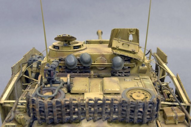 изначально не хотел делать совсем "убитую" машину и сколов сделал не так уж и много, спонжем стараюсь не работать, всё делаю тонкой кистью, а потёртости-это на вкус и цвет..., я не злоупотребляю сухой кистью, так как считаю, что не тёрли немцы свой танк без нужды