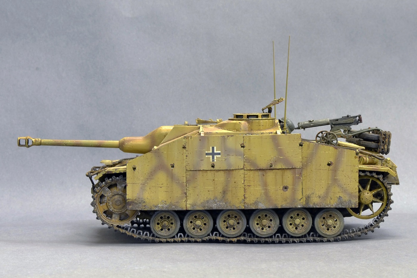 В планах поставить этот Stug на подставку, тем более, что ожидают своей участи пару фигурок (Tank Т-35098 Немецкие самоходчики), но времени сейчас не хватает, так что пока так)).