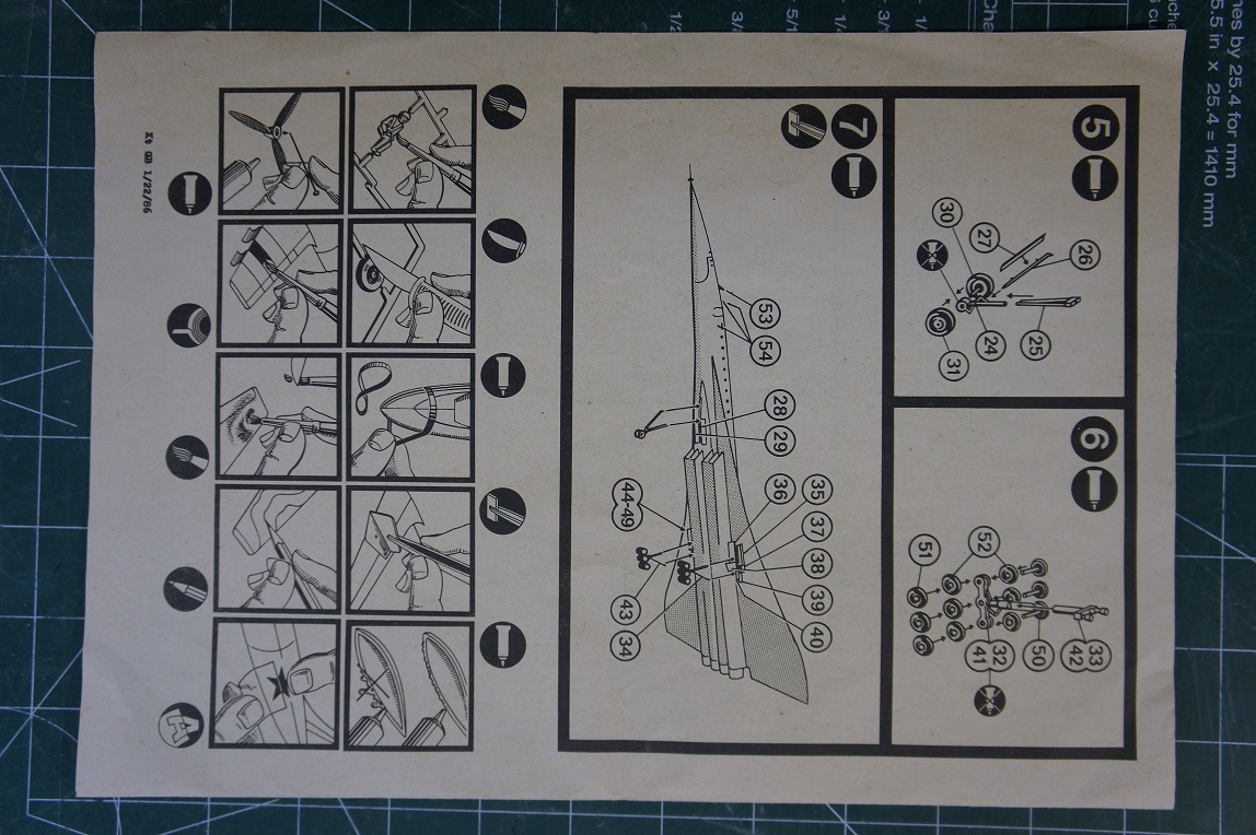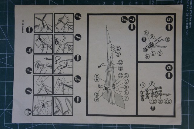 Набор выпуска примерно1985г. Большая картонная коробка в которой находятся литники разного цвета, два тюбика из жести, один из них с клеем другой с краской-серебрянкой, подставка декали и инструкция. На пластике внешний крой, стыковка довольно приличная, но модель до оригинала не дотягивает, так что есть пространство для доработок.