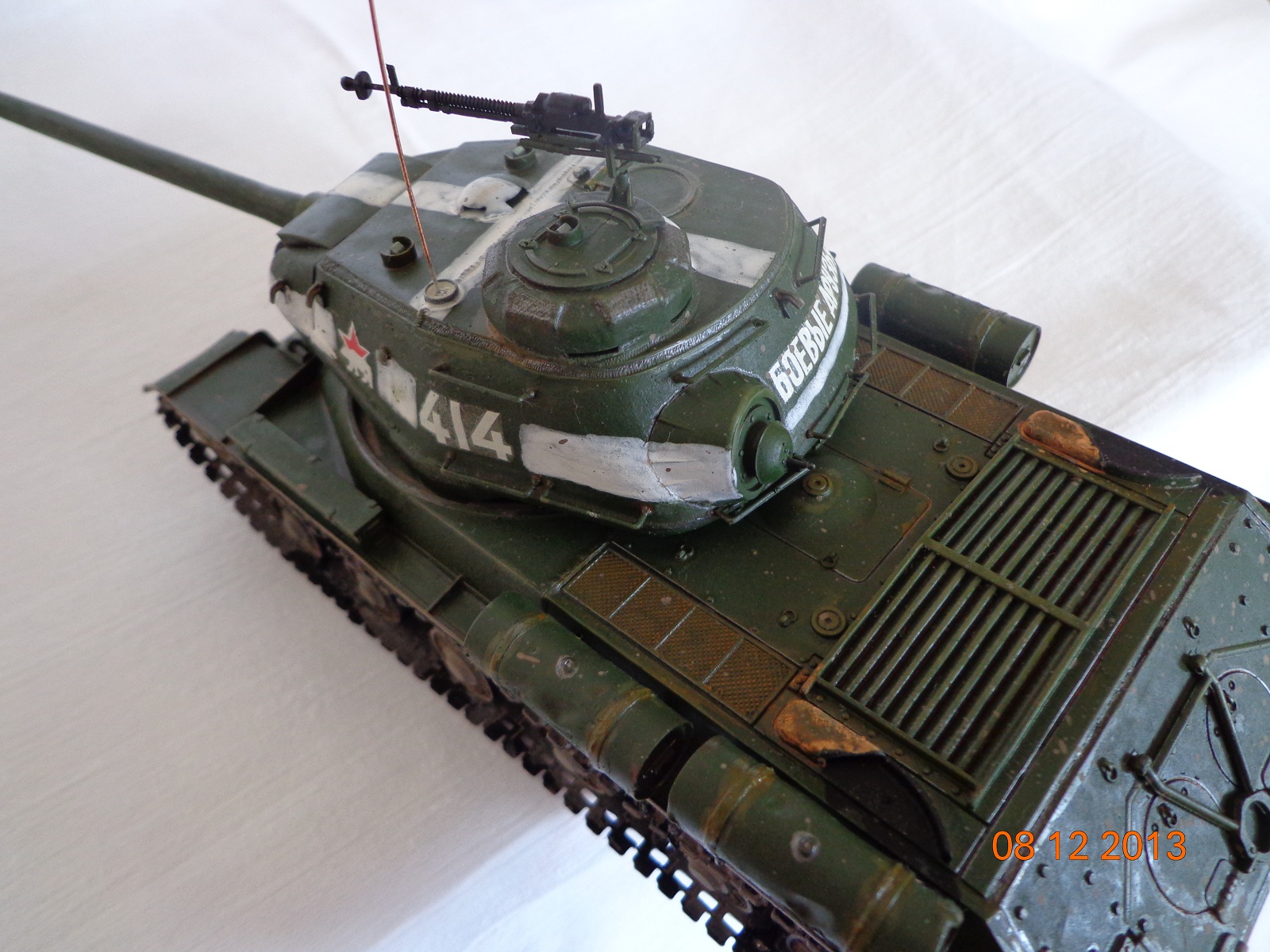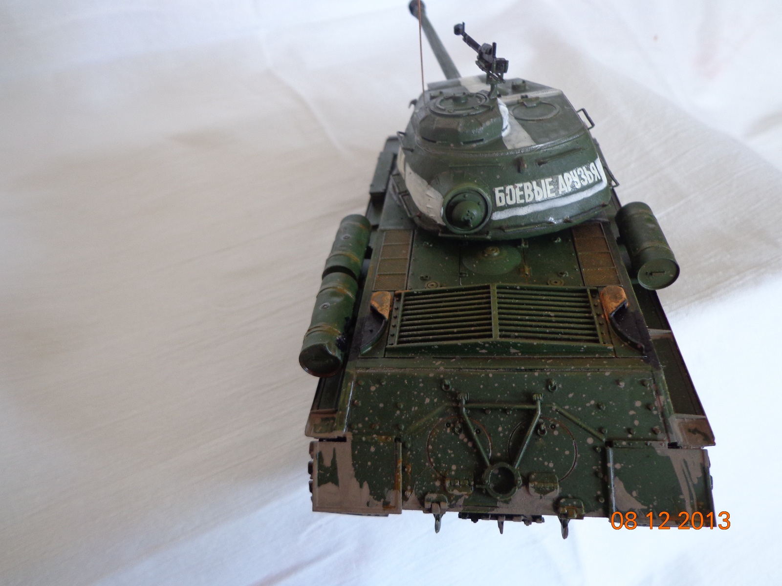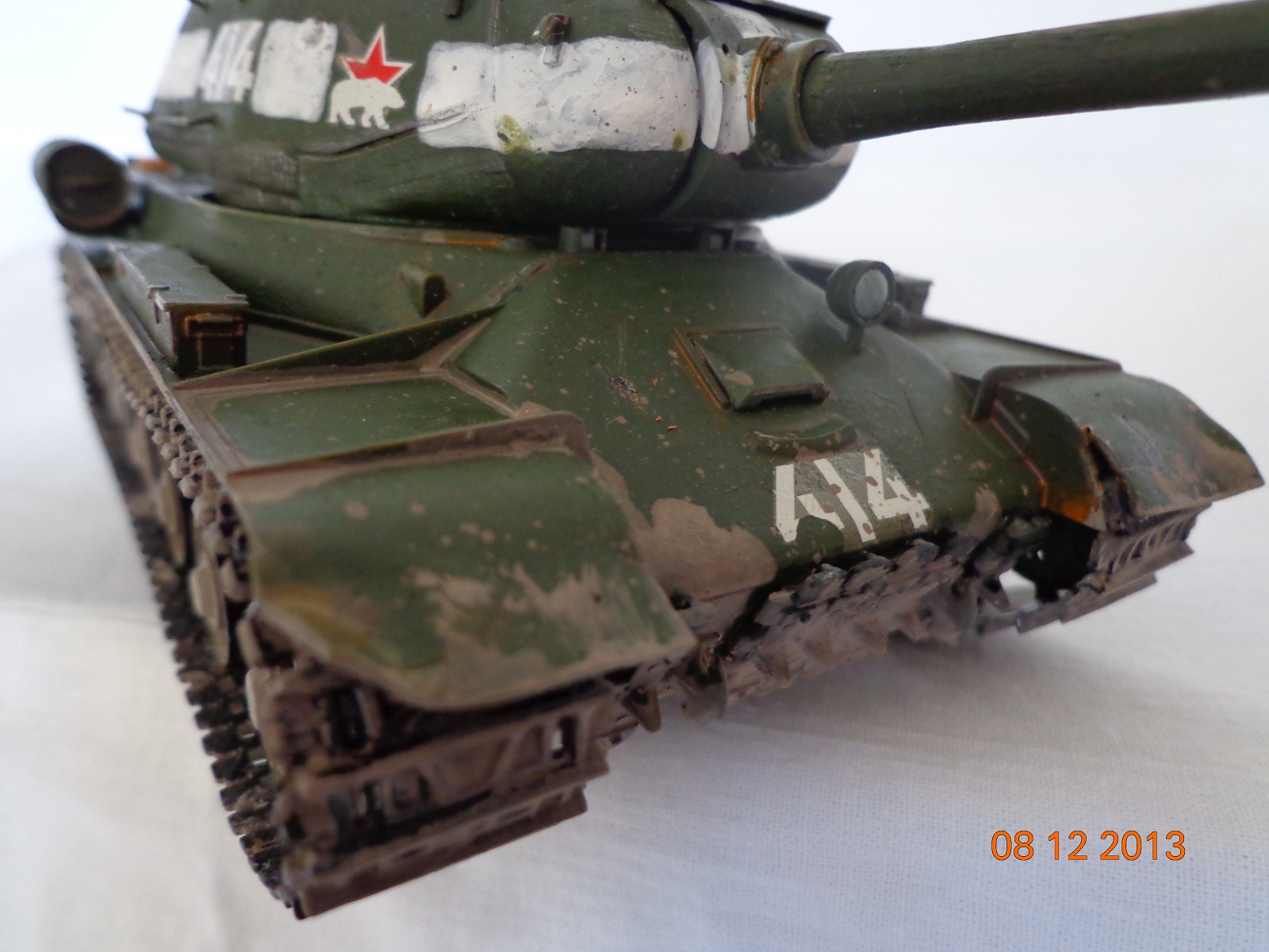 Грязь, выглядит как грязь в мастабе 1:1 на модели в 1:35, просто как жижа... гусеничные ленты... а ну их на фих, положите на полки, будет а ля БТ, так как они выглядят, будто пролежали лет 60 в Шпрее, после их напялили на на танк, но даже не прикоснулись ключём к натяжителю, и танк не заводили, не то, что б проехали... ток цвет их, не 60ти летней давности... а МТО, оно вместо всоса воздуха, занимается выбросом агрессивных сред? С какого перепугу сетки такие ржавые? далее уже просто не хочеться тыкать пальцем в клаву...