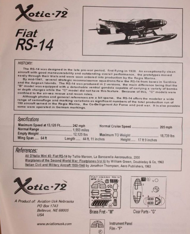 На этот раз модель поплавкового гидросамолёта RS.14. Назначение - бомбардировщик-разведчик. Модель безальтернативна в 72-м.