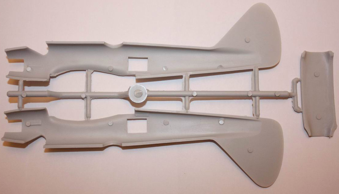 Деталировка слабенькая, литьё замыленное. Фонарь вакушный, и как мне кажется, с ним будут проблемы. Двигатели однозначно надо будет менять на смолу. Есть небольшой листочек травления.