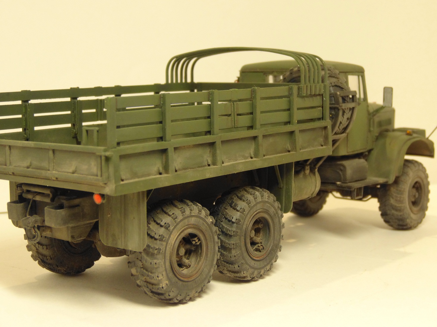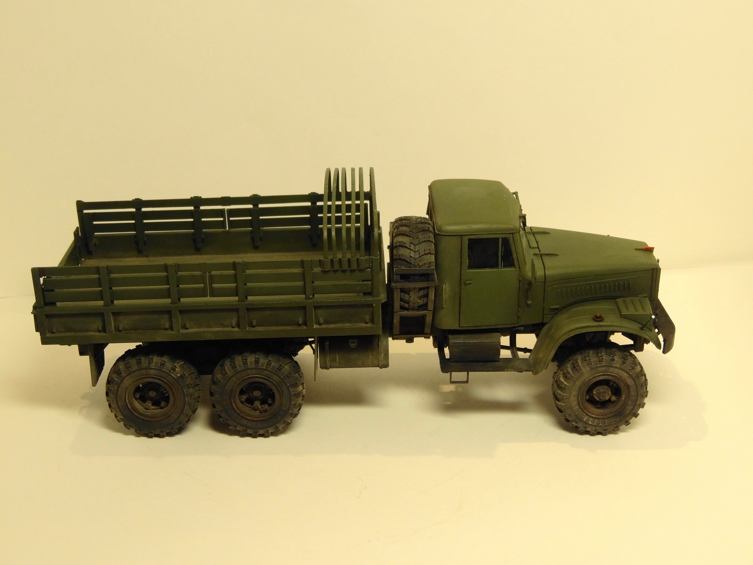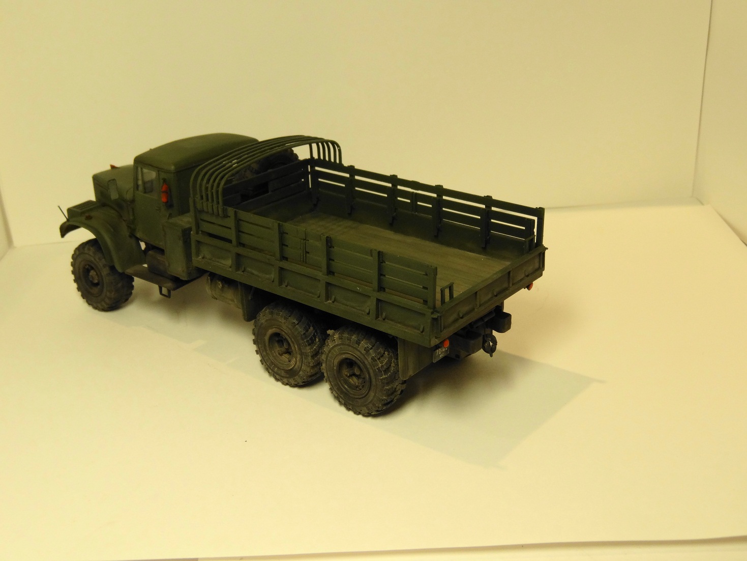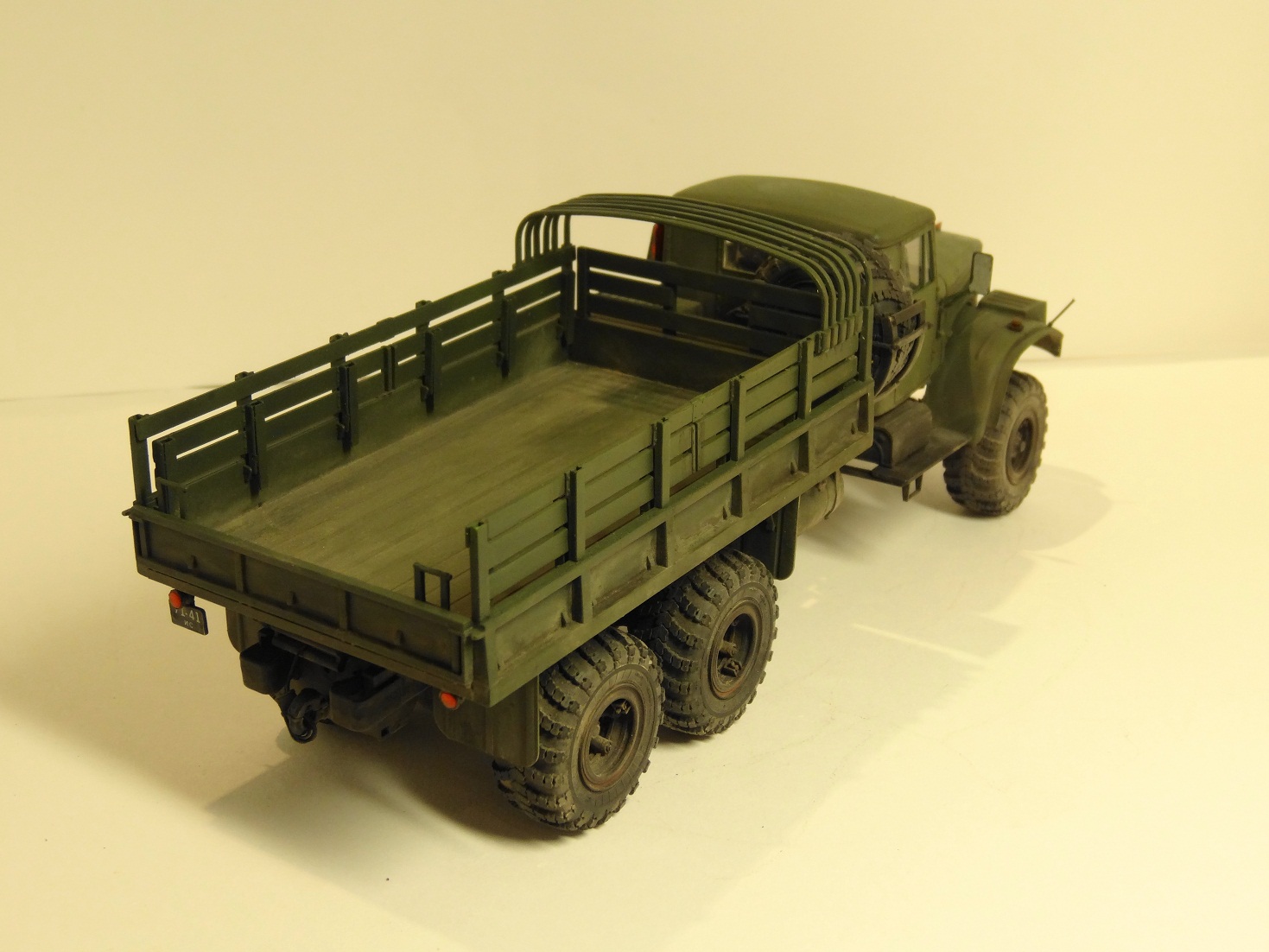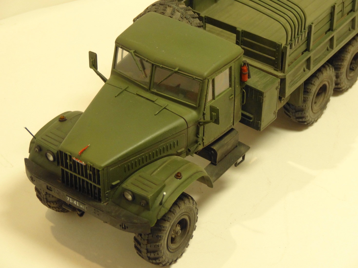 Сейчас собираю подобное чудо, от себя могу отметить что качество отливок не ахти (мне даже больше понравился ГАЗ 66 от ВЭ но там и цена совсем другая)материал черных оливок рыхлый, при обработке остаются заусенцы которые приходится постоянно убирать, до зеленых пока не добрался. Детализация подвески сносная, но рулевого механизма нет вообще (или он взят от 214) придется сделать самому, а завышенный передний мост легко ставится на свое положение подпиливанием, диаметры колес не в масштабе, в схеме сборки нашел уже несколько ошибок и ее последовательсти не придерживаюсь (момент приклеивания крыльев а потом уже капота и кабины понял) Также не особо понятна схема вывода троса лебедки на передний бампер, придется искать