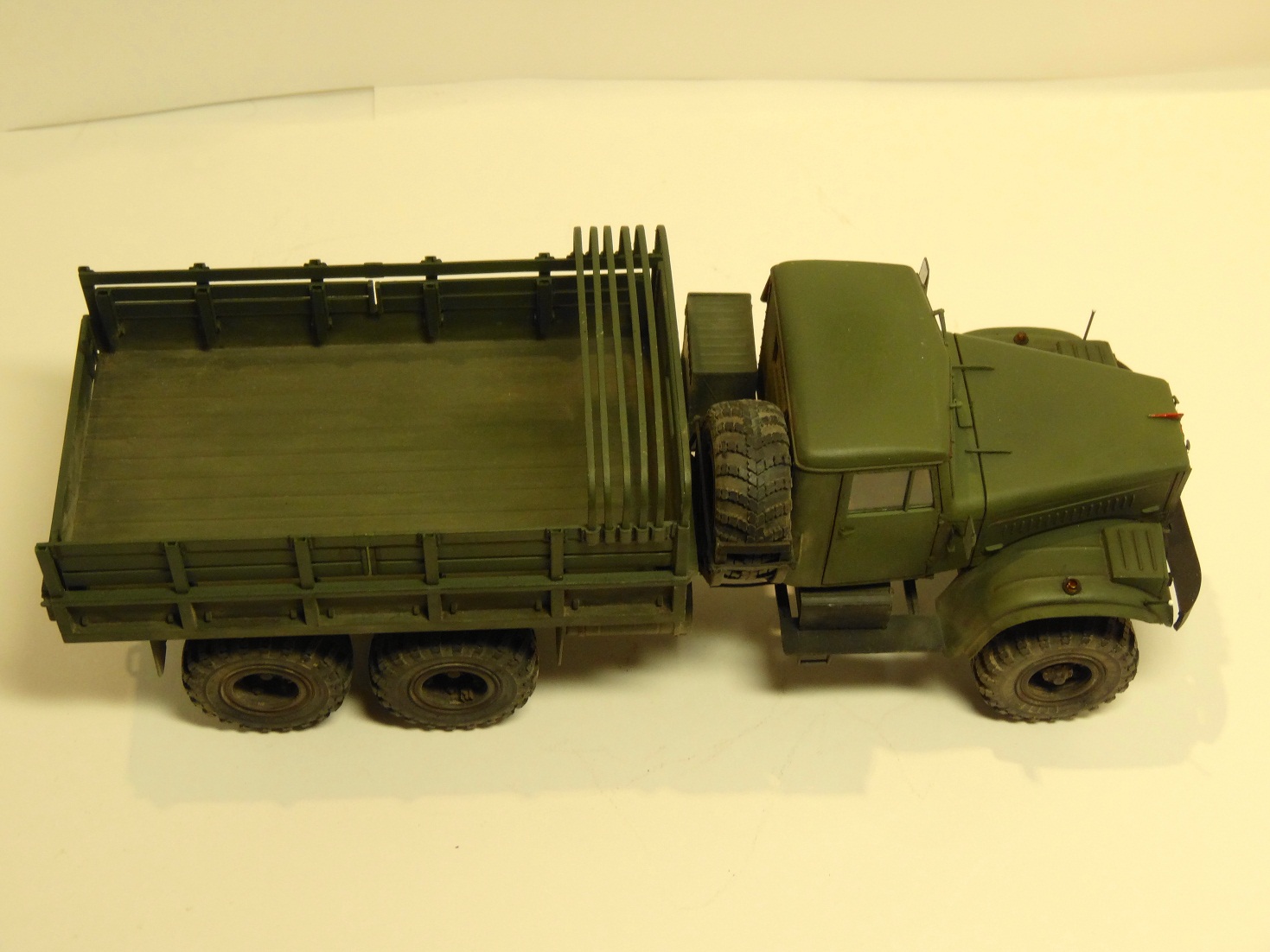 Сам КрАЗ видел в столице нашей родины лишь в роли эвакуатора автобусов,грузовиков и самосвалов в глубоком детстве. Честно скажу таких габаритов модели я не ожидал(26см длины)...
