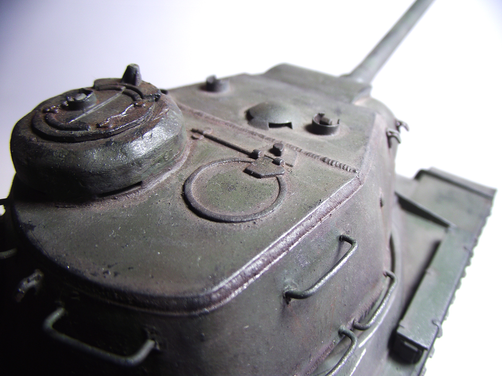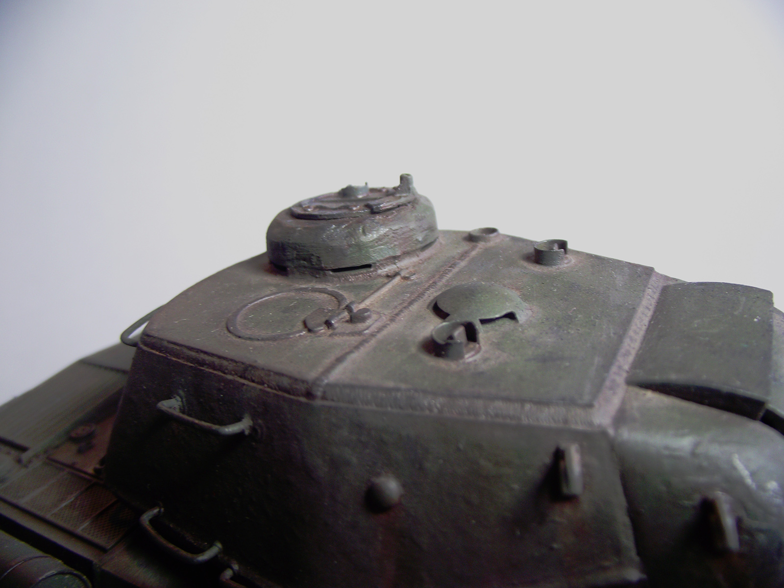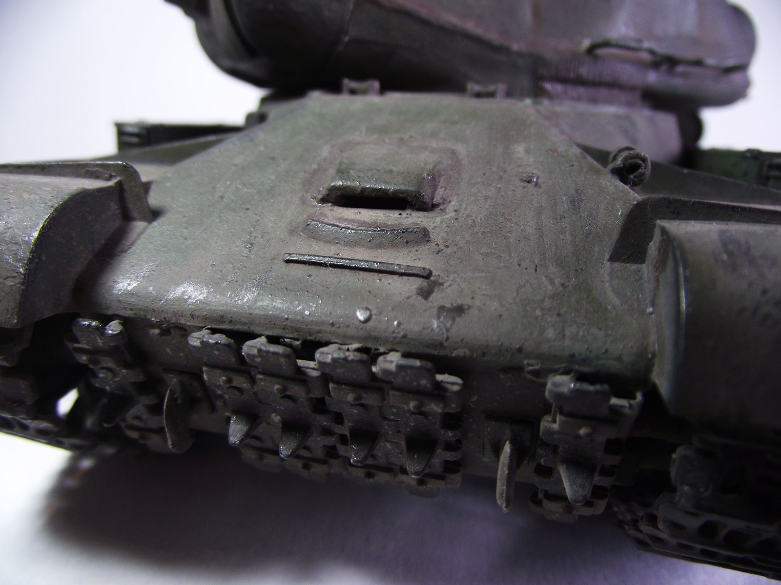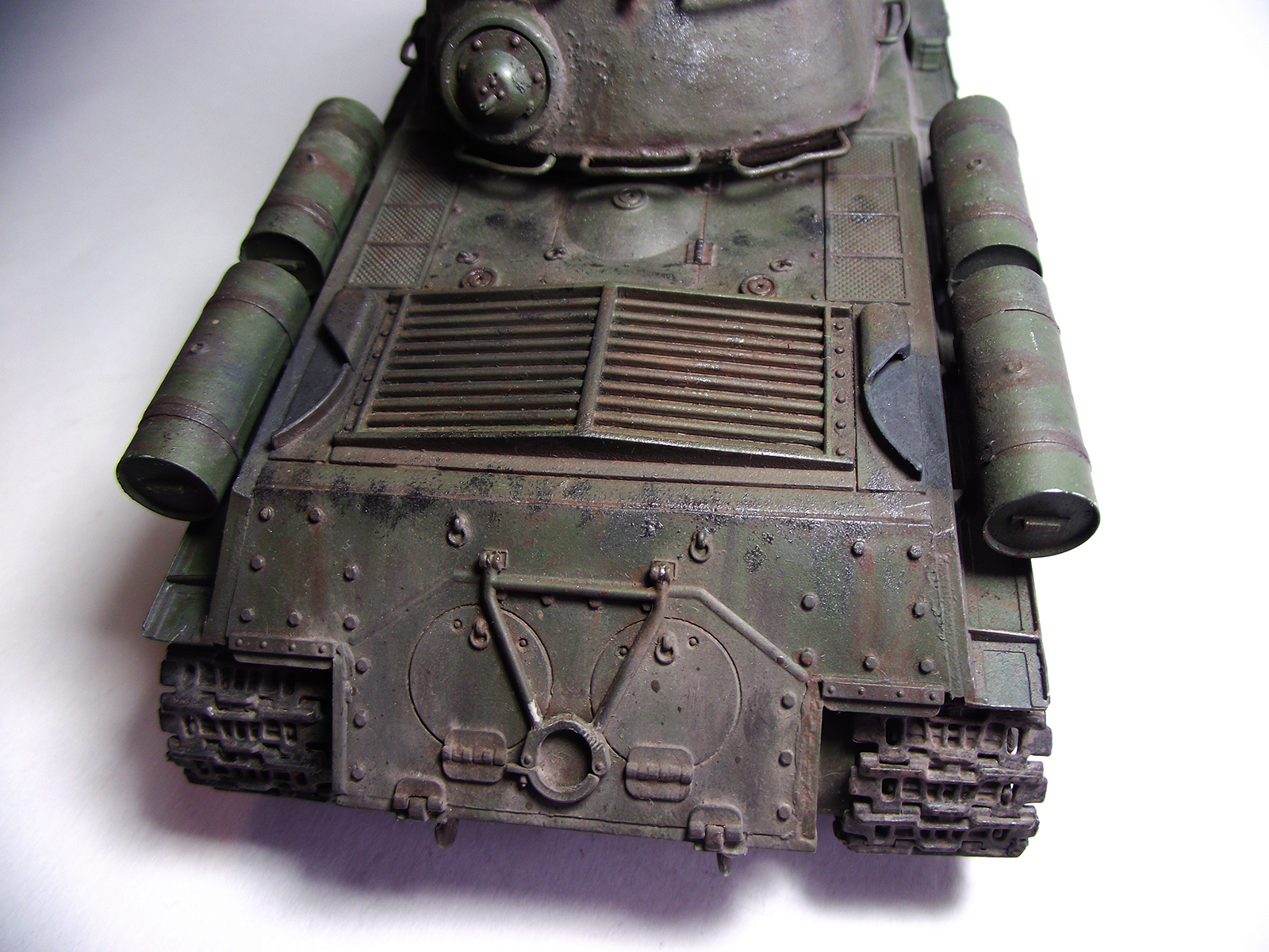 Ну плохо пока, особенно сама сборка подкачала. "Уехал" вниз миллиметра на 3 броневой колпак "ворошиловского" пулемёта; не заменены сетки над радиаторами; ком. башенка склеена неаккуратно; нет не только курсового пулемёта - но и отверстия для его установки; кое-где не убраны следы от стыка пресс-форм... На оптику нет даже намёков. Если чего ещё в постройке - Вы не стесняйтесь, спрашивайте в "личку" - пока есть возможность исправить.