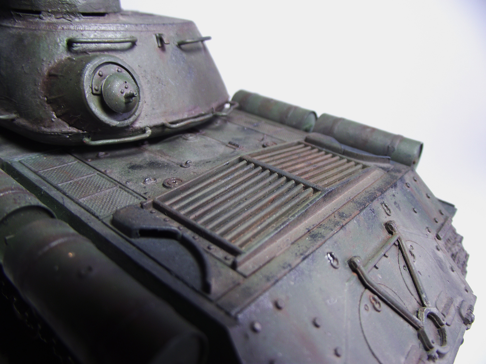 Для визеринга (недавно пришёл к такому выводу), хорошо ореинтироваться на фильм Шахнозарова "Белый тигр",( на Т-34/85, всё остальное муляж), время съёмок, вполне соответствует времени жизни танка на поле боя, я уверен, так танки и выглядели тогда...(хоть что то стоящее, в фильме)